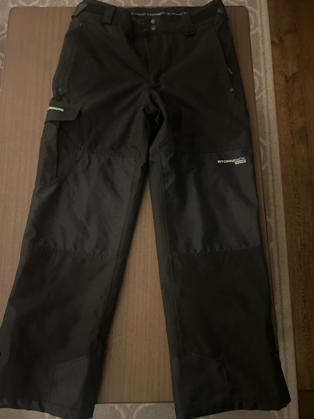 Brand new -Black Stormpack Sunice ski pants. Size M/M. These pants have a durable, water-resistant exterior and multiple pockets for storage. Reflective accents on the lower legs enhance visibility. Suitable for winter sports and outdoor activities.