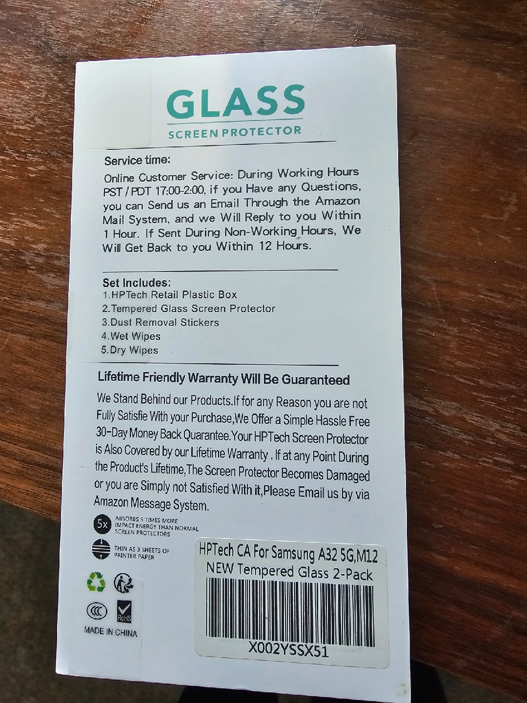 282Selling a new 2-pack of HPTech tempered glass screen protectors for Samsung A32 5G and M12 phones! The box includes the HPTech retail plastic box, tempered glass screen protectors, dust removal stickers, wet wipes, and dry wipes. msg if in $5 for the protector