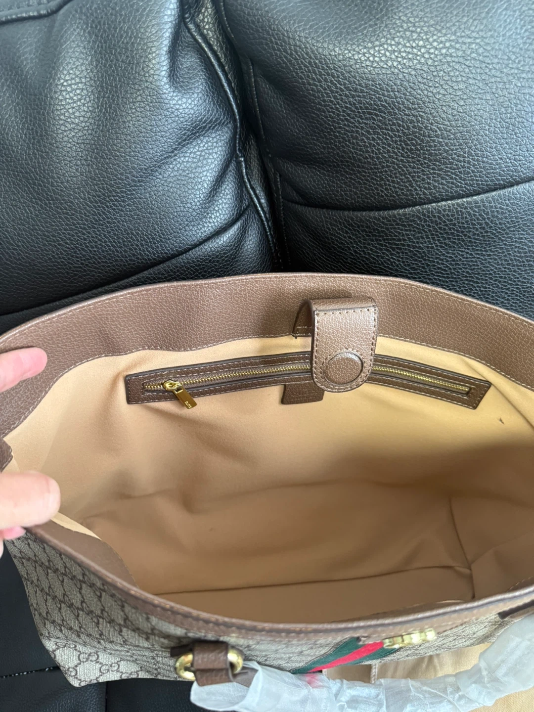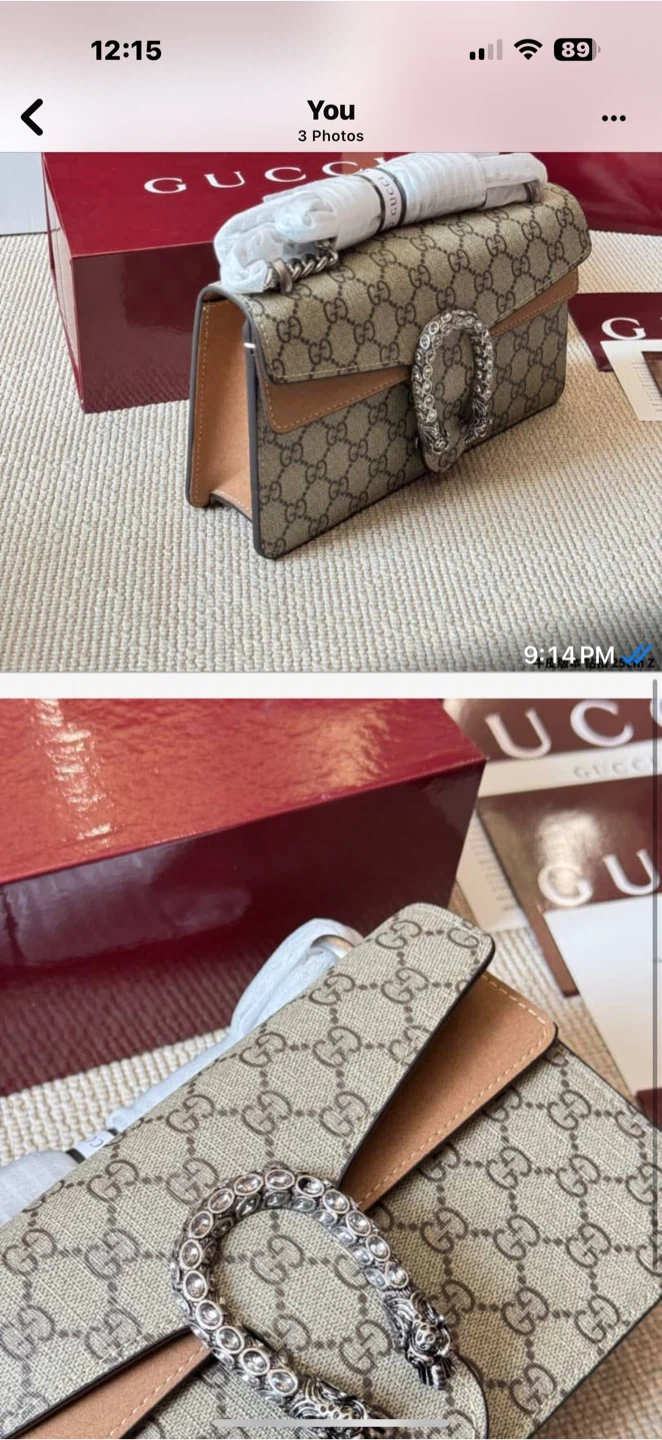 It comes with dust bag, great quality at affordable price. Pm me for more details if you're interested in it. Bag, belt, hat and more!