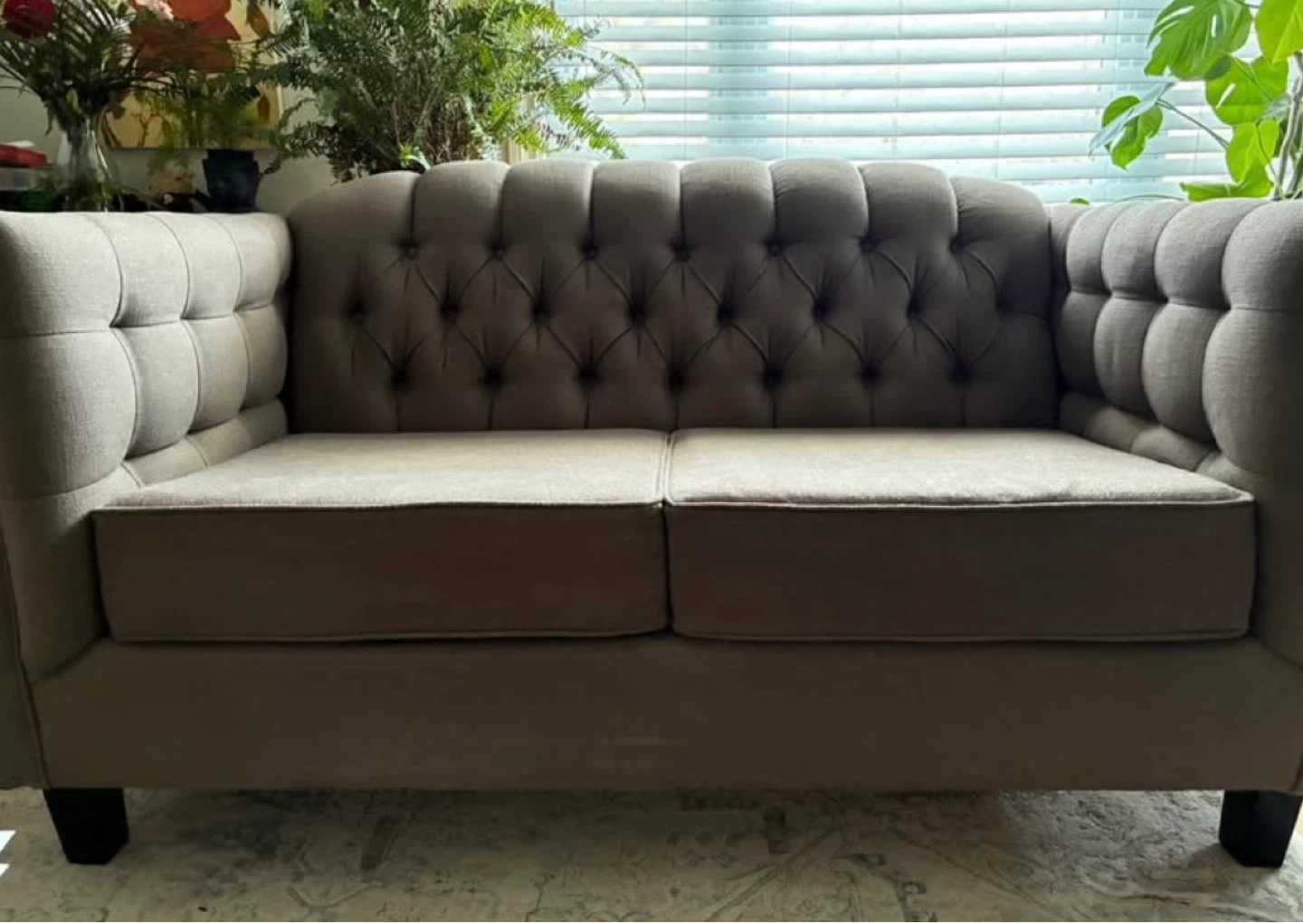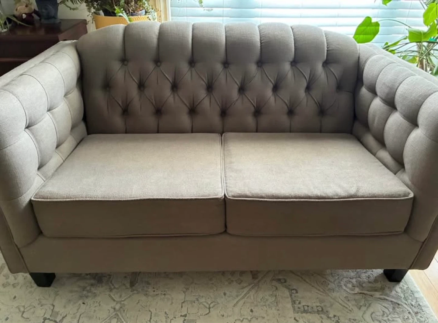 Buy & SellTufted LoveseatTufted Loveseat$191This is a tufted loveseat with button accents. The seat cushions are removable. Fabric material. Beige/Grey colour Pet friendly homeConditionGoodWHERE TO MEETGrantham near Jim Bradley ParkView MapSELLERCarmGrantham100 reviews0 chats·0 favorites·16 viewsSEND CHAT TO SELLERHi Carm! I’m interested in your listing.Hi Carm! I’m interested in your listing.Get the Karrot app to chatSign In to chat