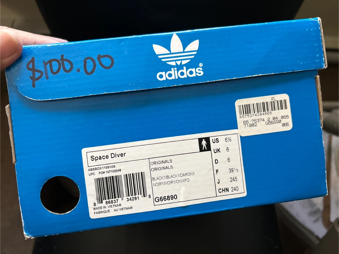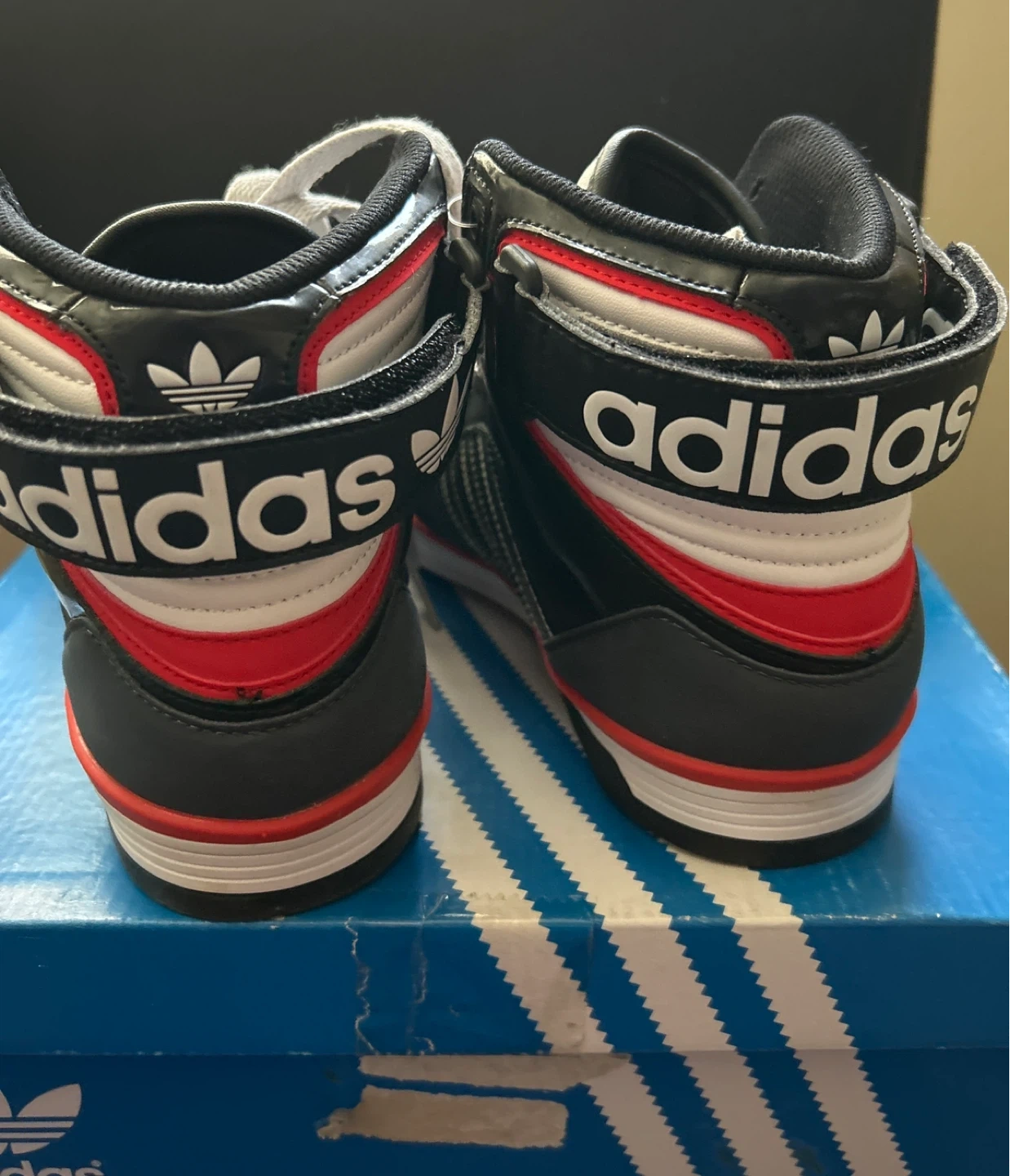 These New Adidas Space Diver sneakers feature a high-top design in a black, grey, and red colourway. They come with original laces and include the box. Perfect for casual wear! size 6/12 male.