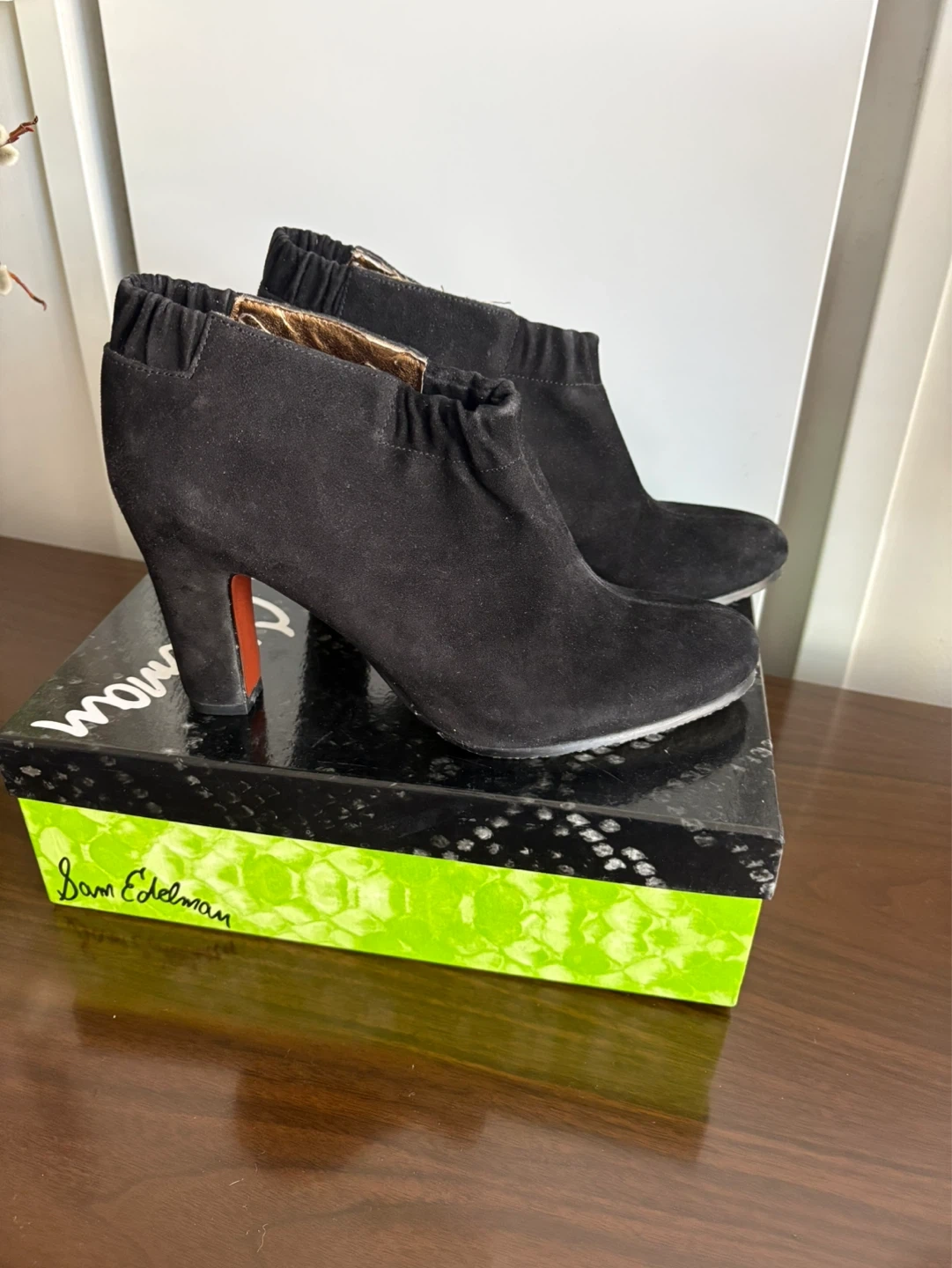 Man-made materials inside of shoe with suede real leather at exterior. A bit of rouging around the ankle for a nice fit. Available for pick up near St. Lawrence market.