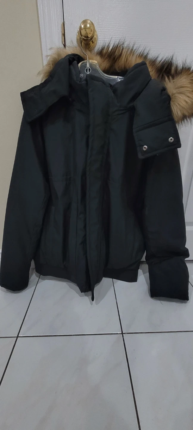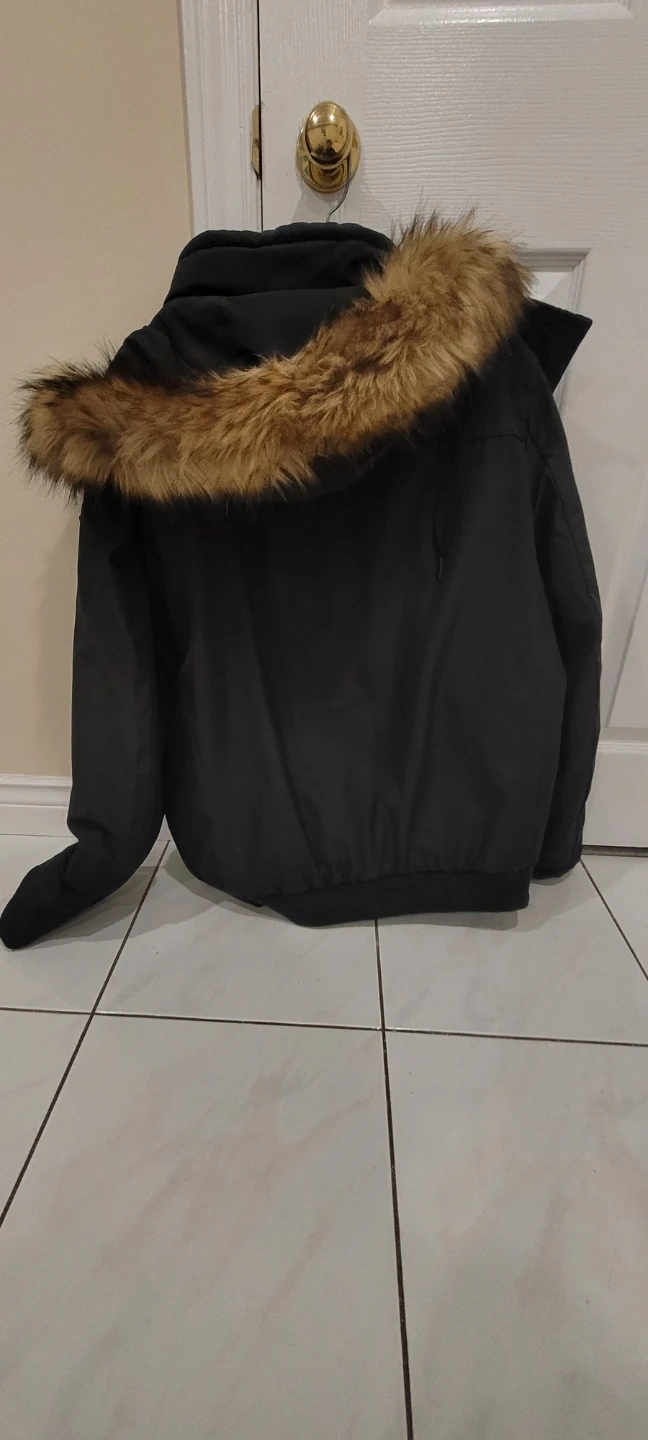 Marc New York Andrew Marc black bomber jacket with a faux fur trimmed hood. Size XL. Made in China. This jacket's warm and stylish design makes it great for colder weather!