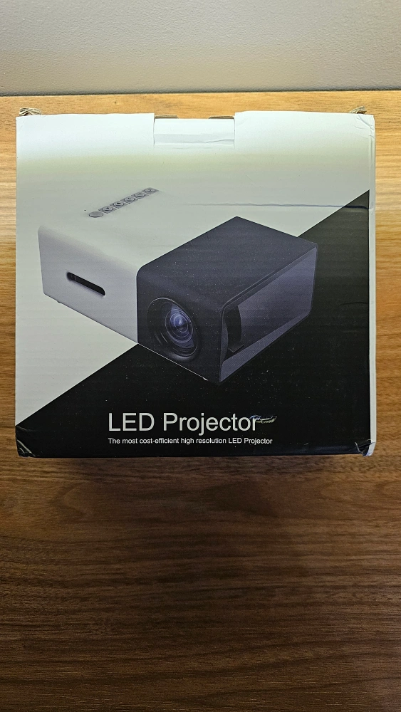 Compact LED projector. High-resolution. Supports various video and audio files capable of connecting to a variety of devices by wired connection or playing files off of local media.