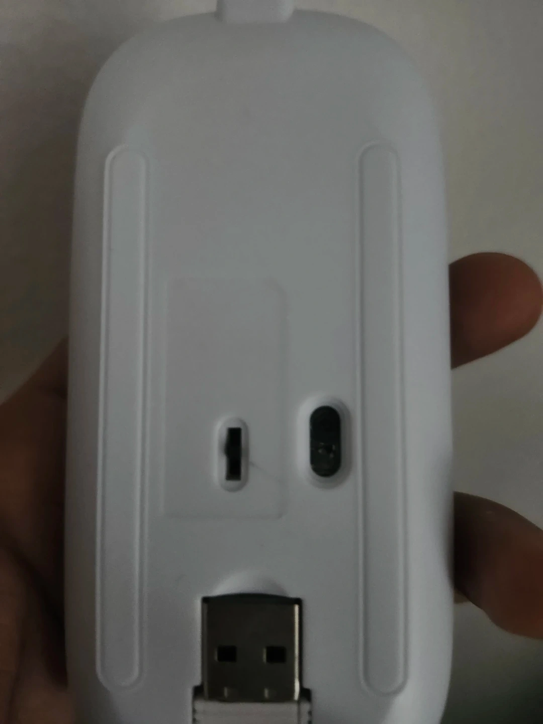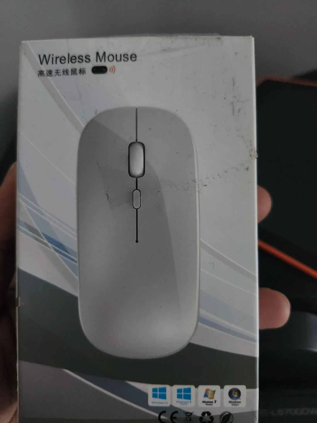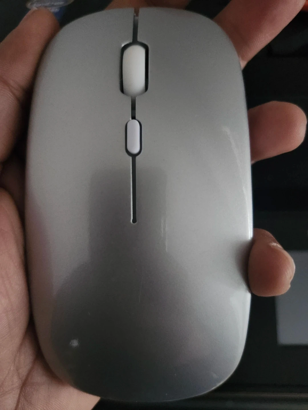 This is a sleek, silver wireless Bluetooth mouse. It's compact and designed for comfortable use. Compatible with Windows 10, 8, and 7.