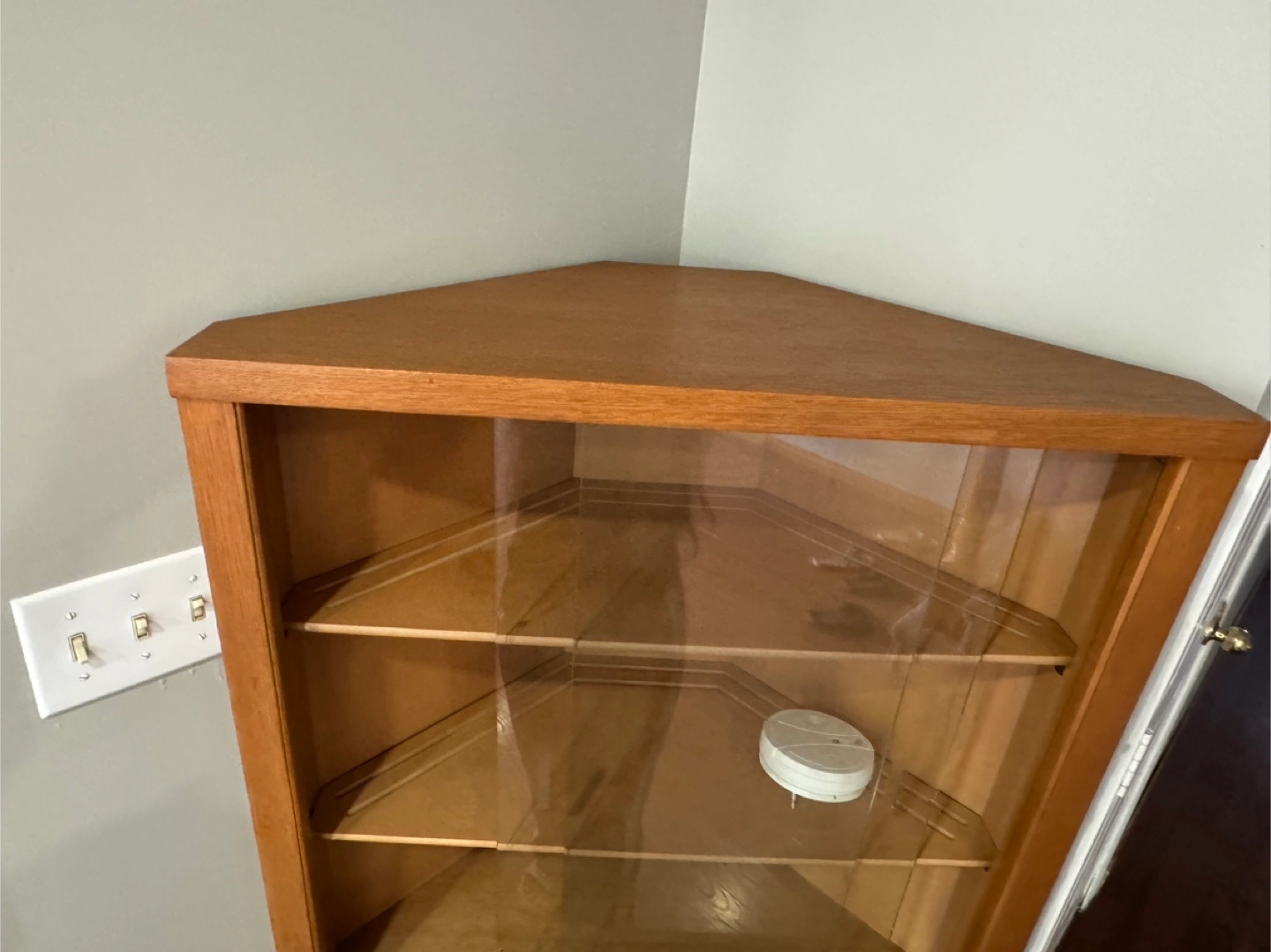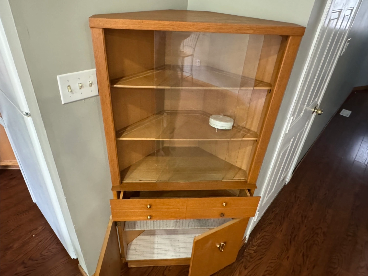 Wooden Corner Display Cabinet with Glass Doors and Drawers
