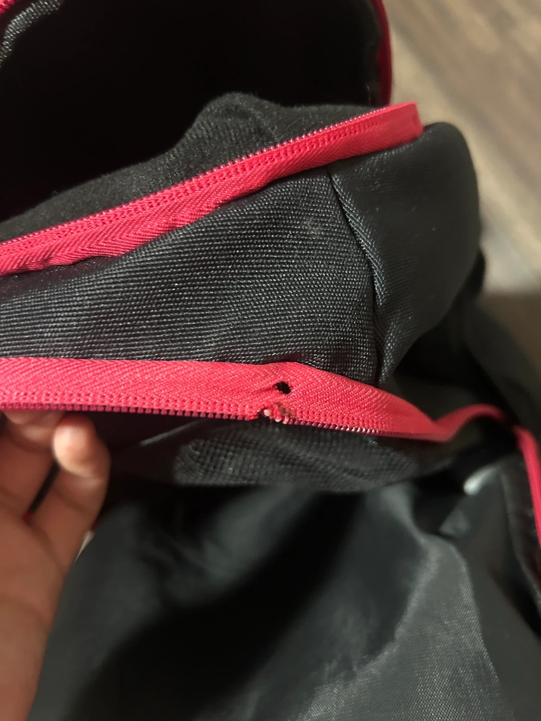(Don’t zip the back zipper all the way or the zipper gonna get stuck and could potentially break more of the zipper teeth)