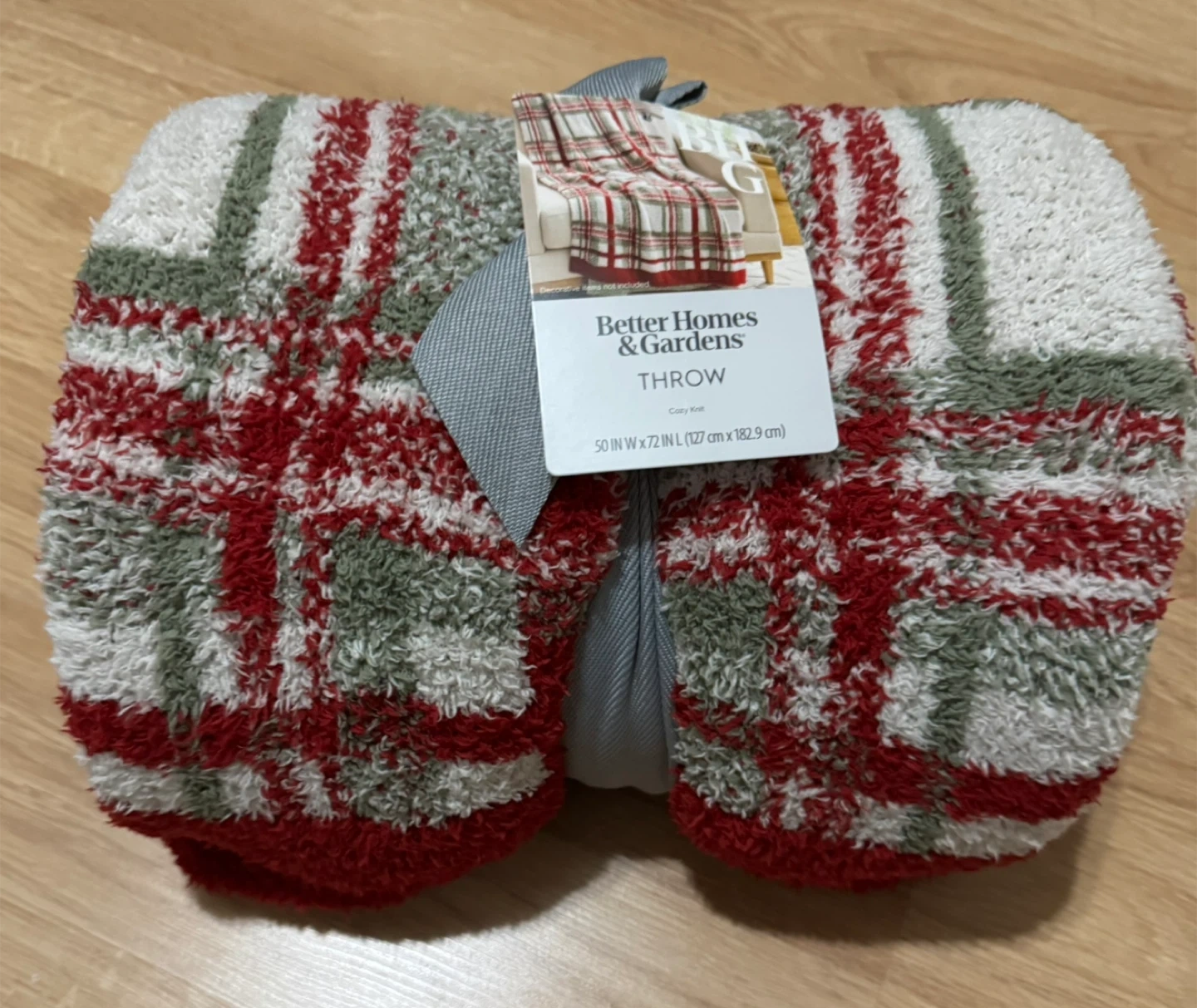 Cozy knit throw blanket from Better Homes & Gardens. Measures 50 inches by 72 inches. Perfect for adding warmth and style to your living space!