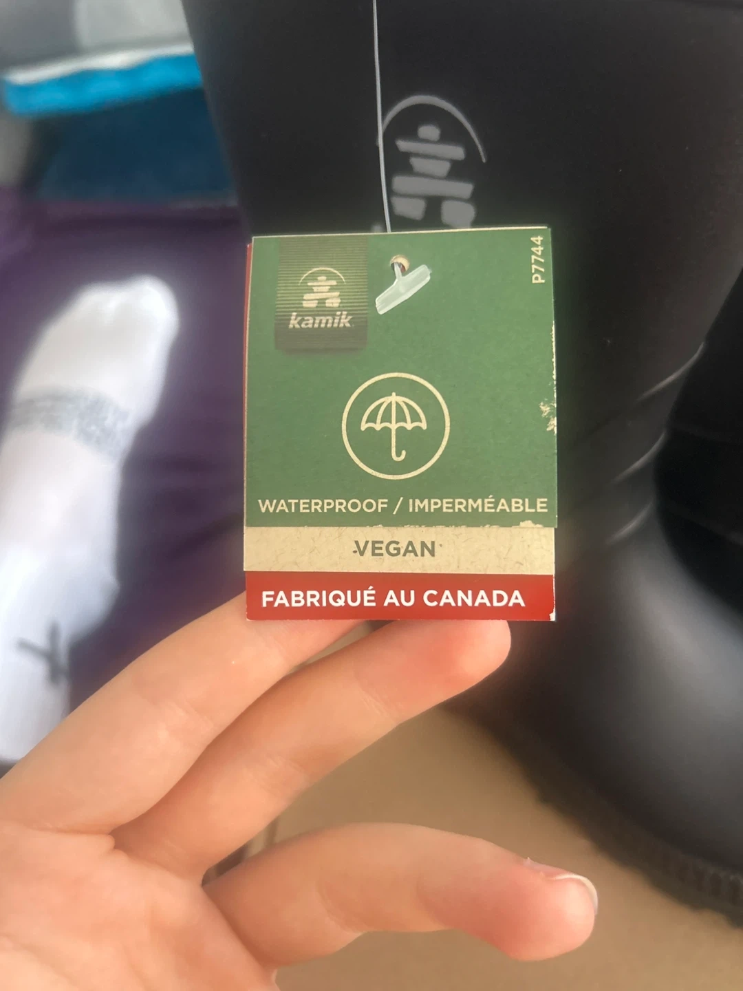 Kamik waterproof vegan rain boots in black. Made in Canada. These boots are durable and ready for any wet weather adventure. They're perfect for keeping your feet dry on rainy spring days.