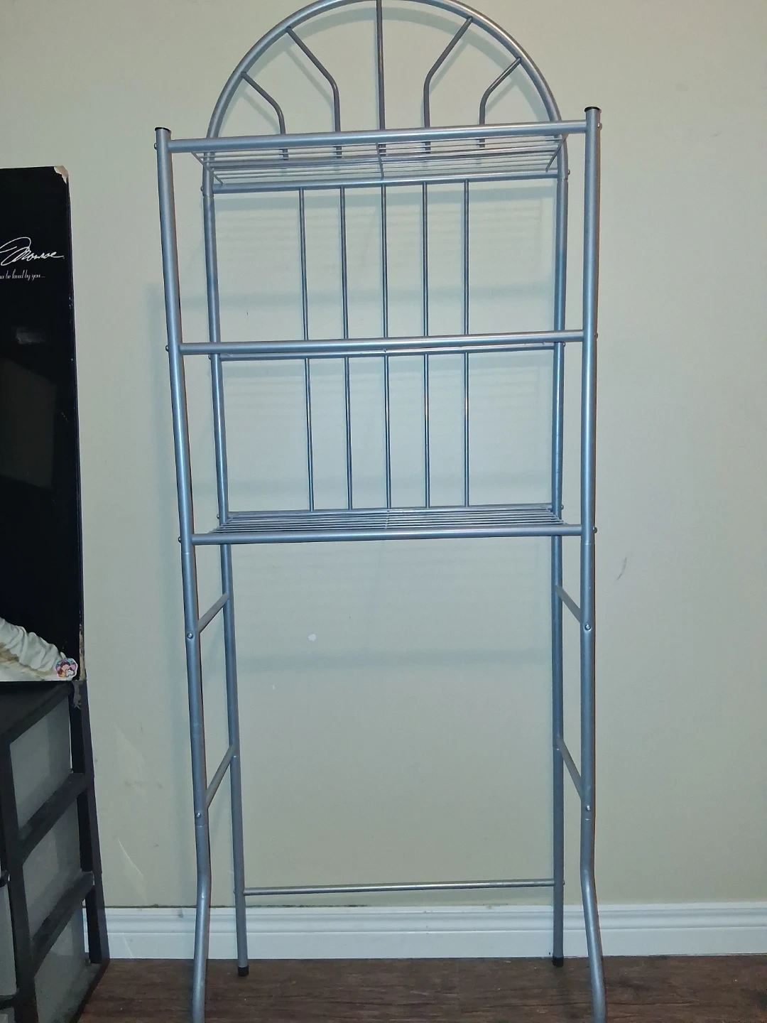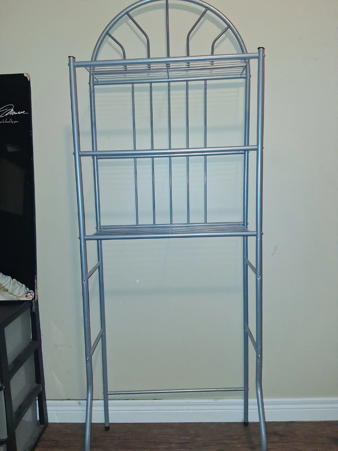 Selling a silver over-the-toilet bathroom shelf unit. It's in great shape and ready to help organize your bathroom space. Perfect for adding extra storage without taking up too much room!