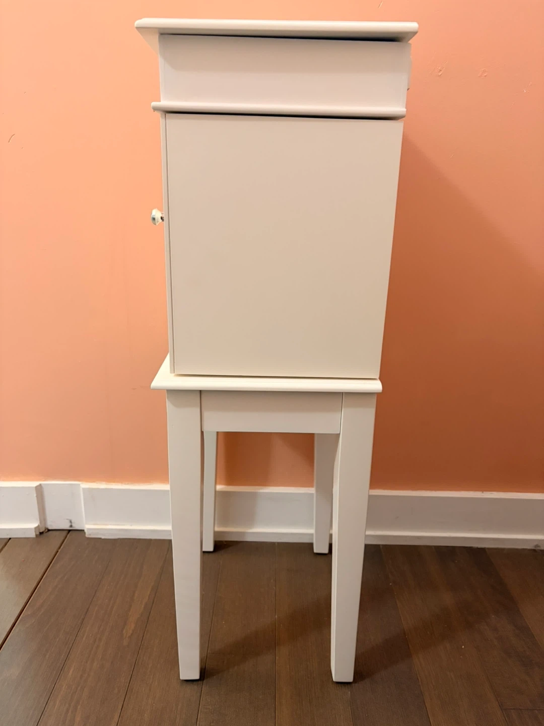 White Jewellery Cabinet with Mirror and Ring Storage