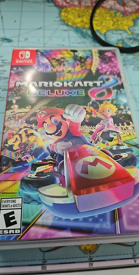Get ready to race with Mario Kart 8 Deluxe for the Nintendo Switch! This game offers new ways to race with friends and family. Enjoy new characters and courses, and challenge up to 12 players online! It's rated E for Everyone.