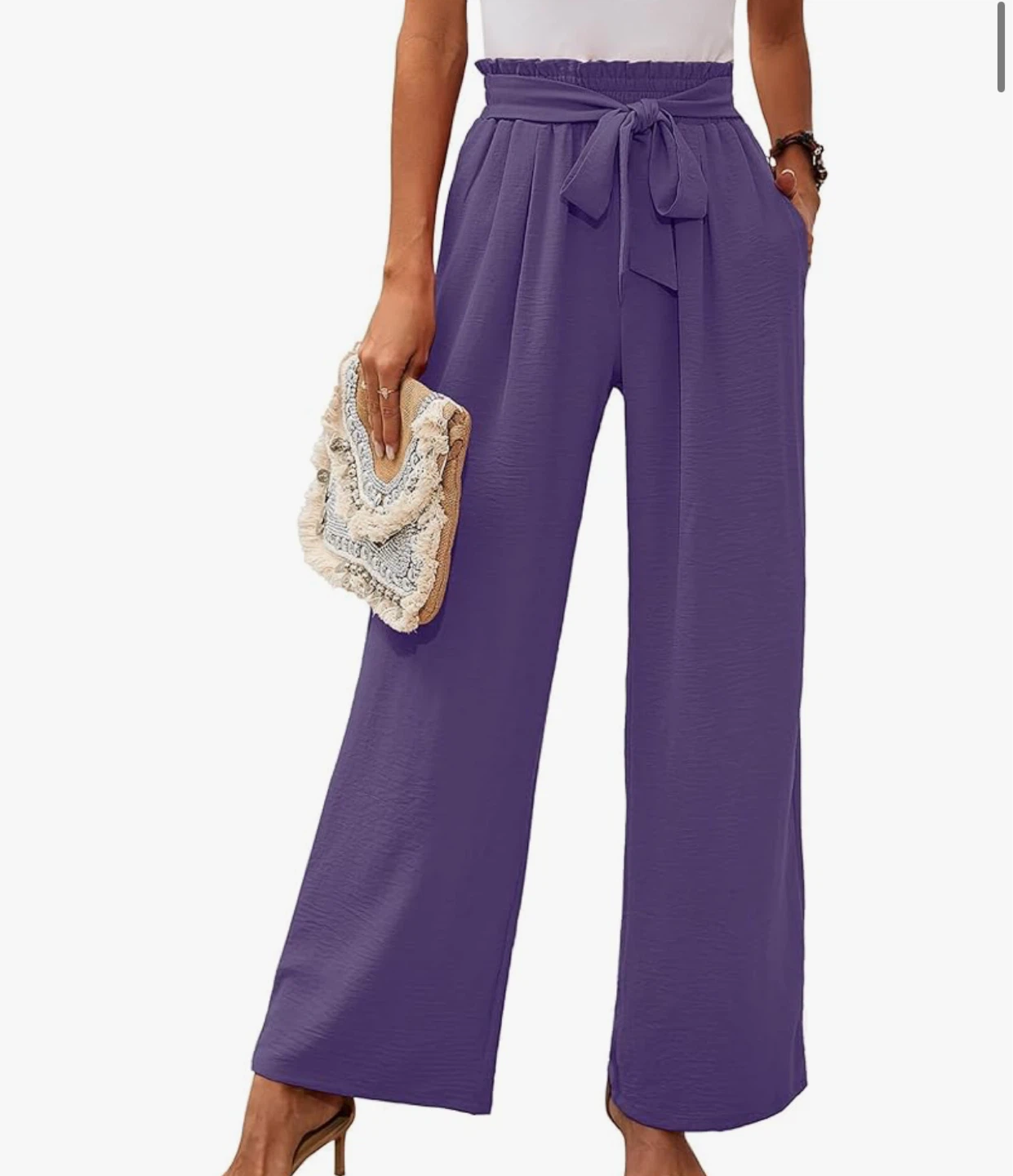 Comfy wide leg pants with a high-waisted tie-belt. Features side pockets and a flattering flowy fit. Made from a textured polyester blend for a stylish look. Dress up or down with sandals. Never worn, bought for summer and missed the return window as they are slightly too big
