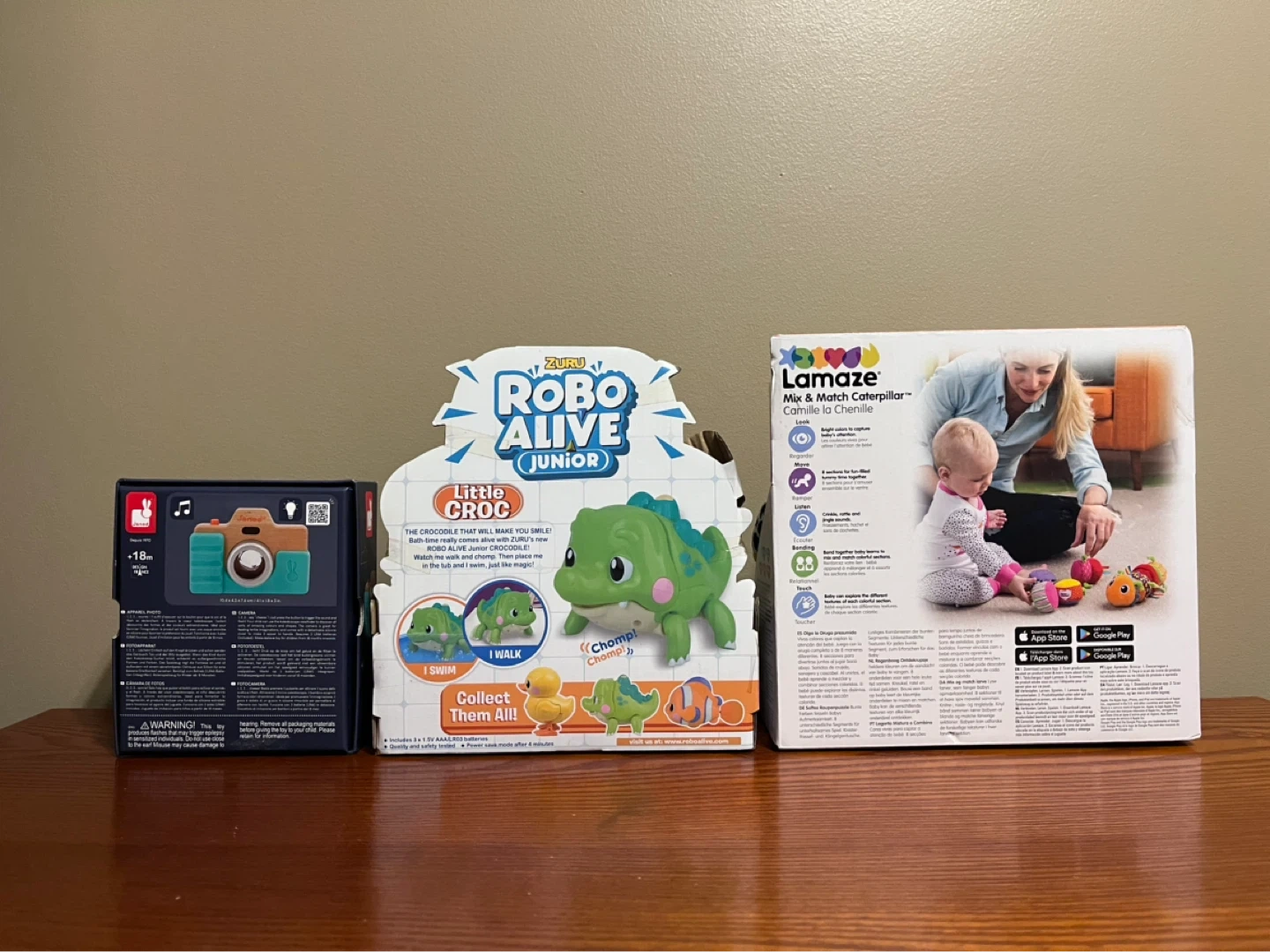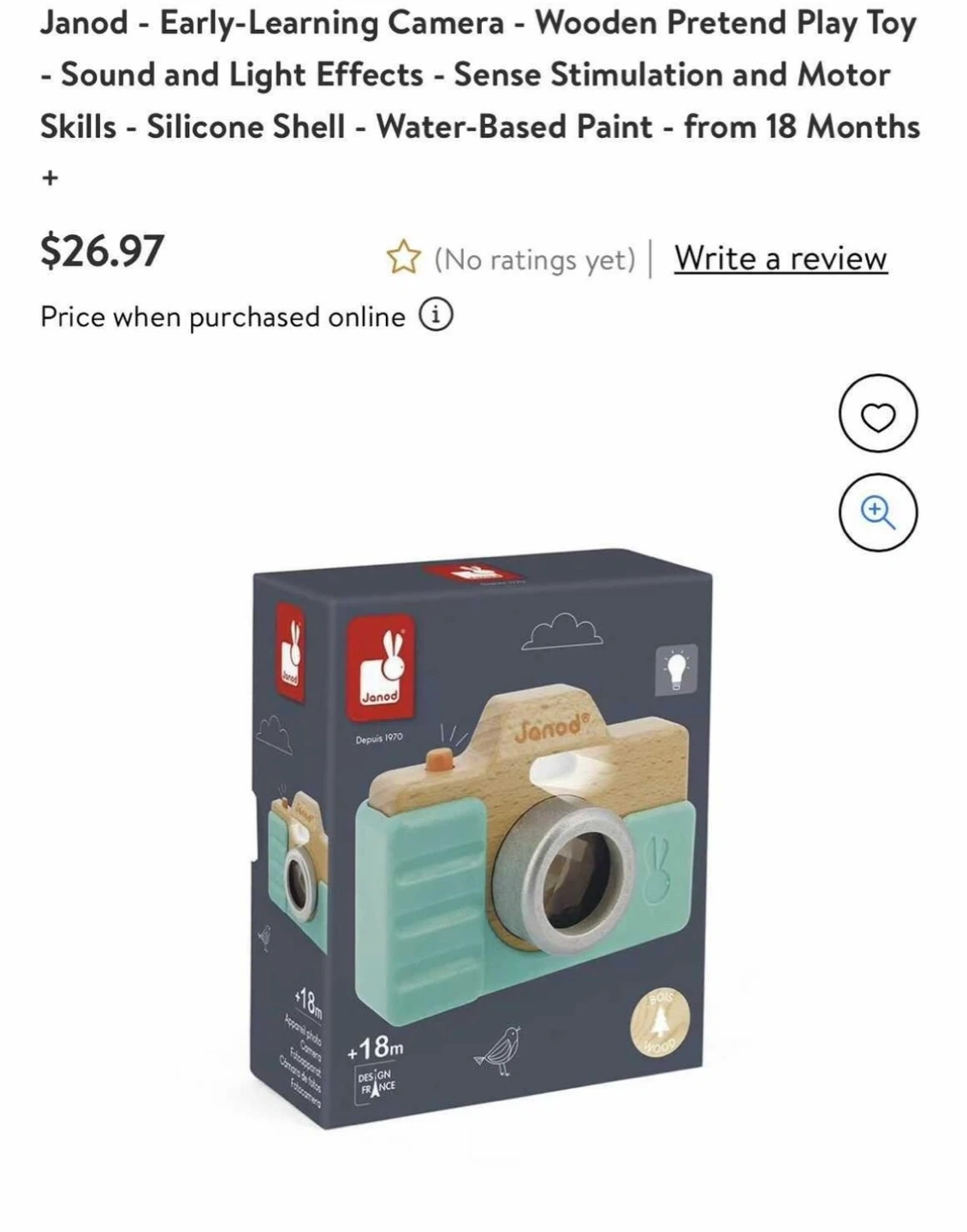 $18 Sound and light wooden pretend toy camera. +18 months.
