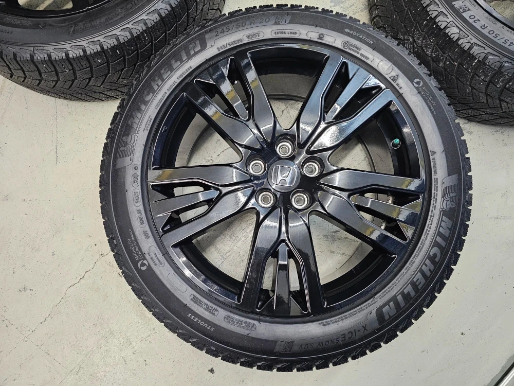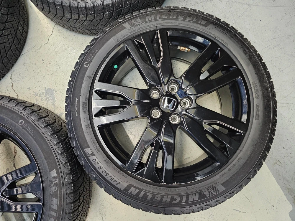 Set of 4 20" Michellin X-ICE winter tires on replica rims 245/50/R20 used on Honda pilot/passport. Rims and tires are in good shape, no bend, no cracks, minor curb rash on 1 rim. Tires are almost brand new with approximately 90% thread left on them, no tpms
