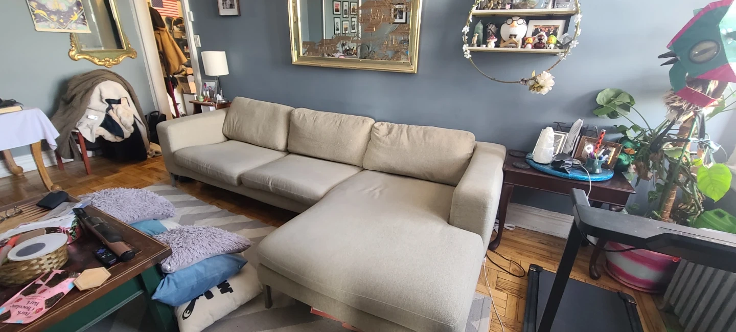 Stunning sectional sofa! This high quality beige couch was orgianlly $5000. The fabric comes off to easily wash, and the sectional part is able to detach making getting it into an apartment easy enough. Reach out to get this fantastic opportunity of a couch