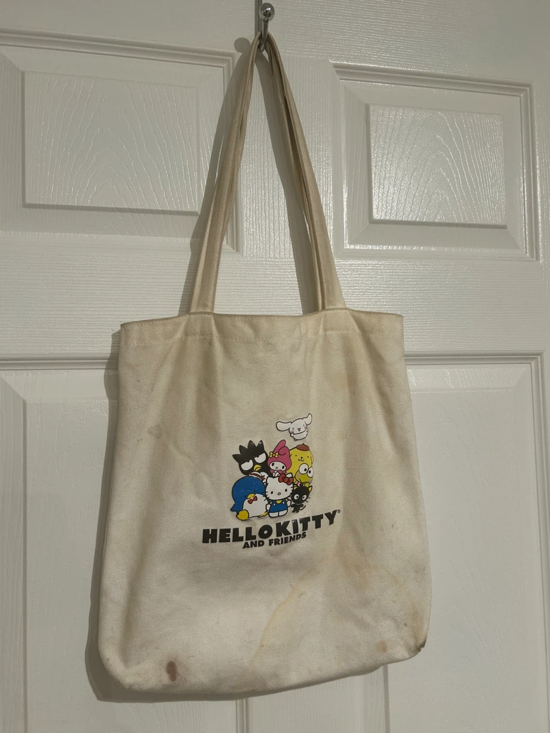 Hello Kitty & friends canvas tote, some staining so perfect for a custom dye job!