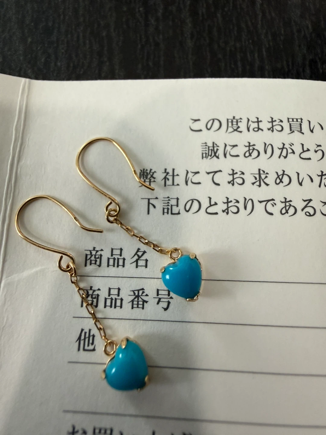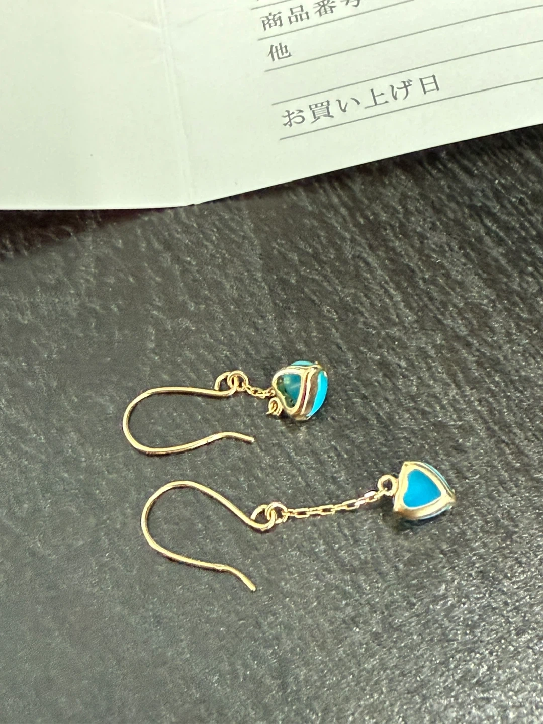 Brand new lightweight 18K yellow gold setting for turquoise drop earrings for all-day wear. Classic, versatile design ideal for dressing up any outfit.Comes with small certificate from the store in Japan. Very cute heart design. Weighs less than 1 grams. Has a very tiny 18K markings.