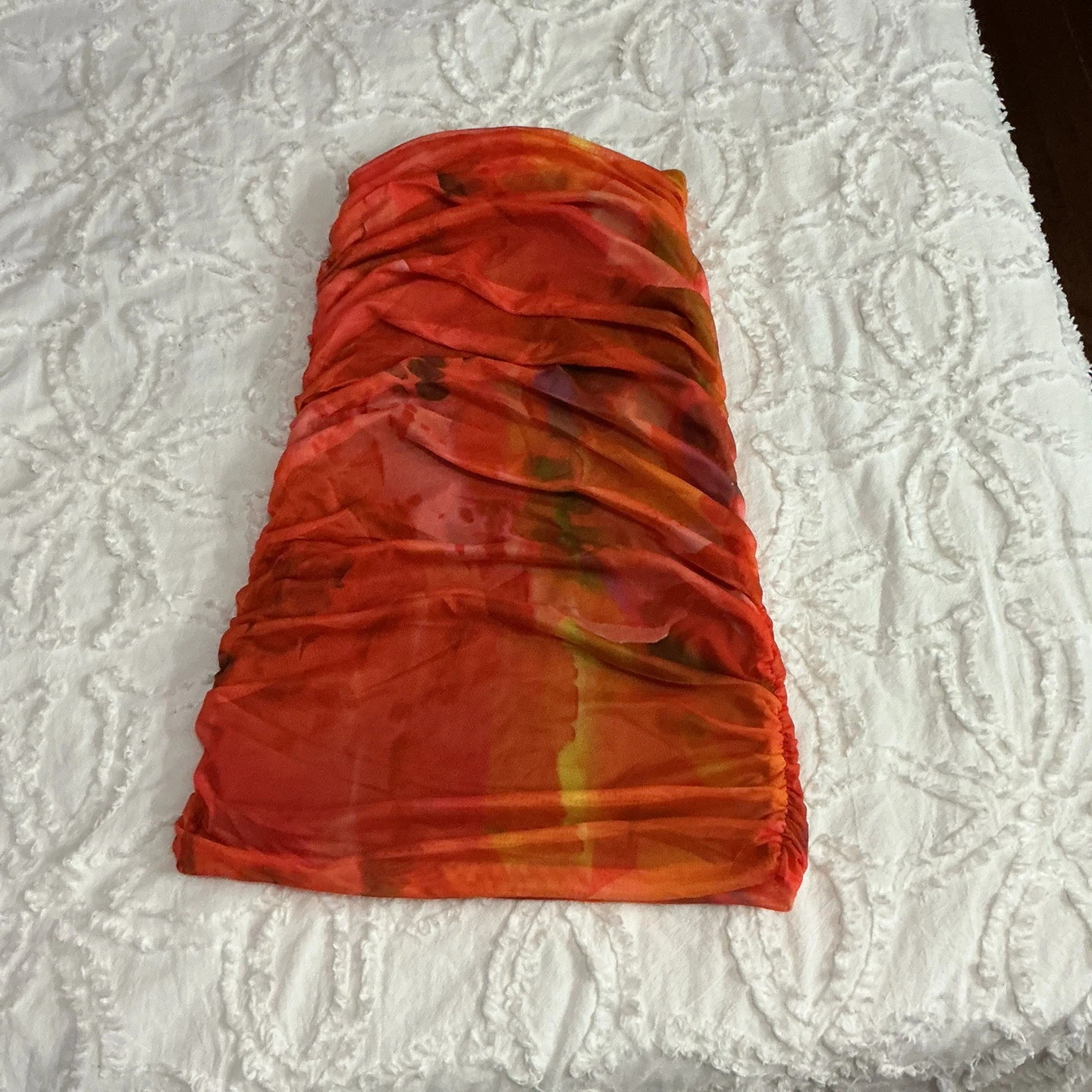 Orange Ruched Mesh Tube Top