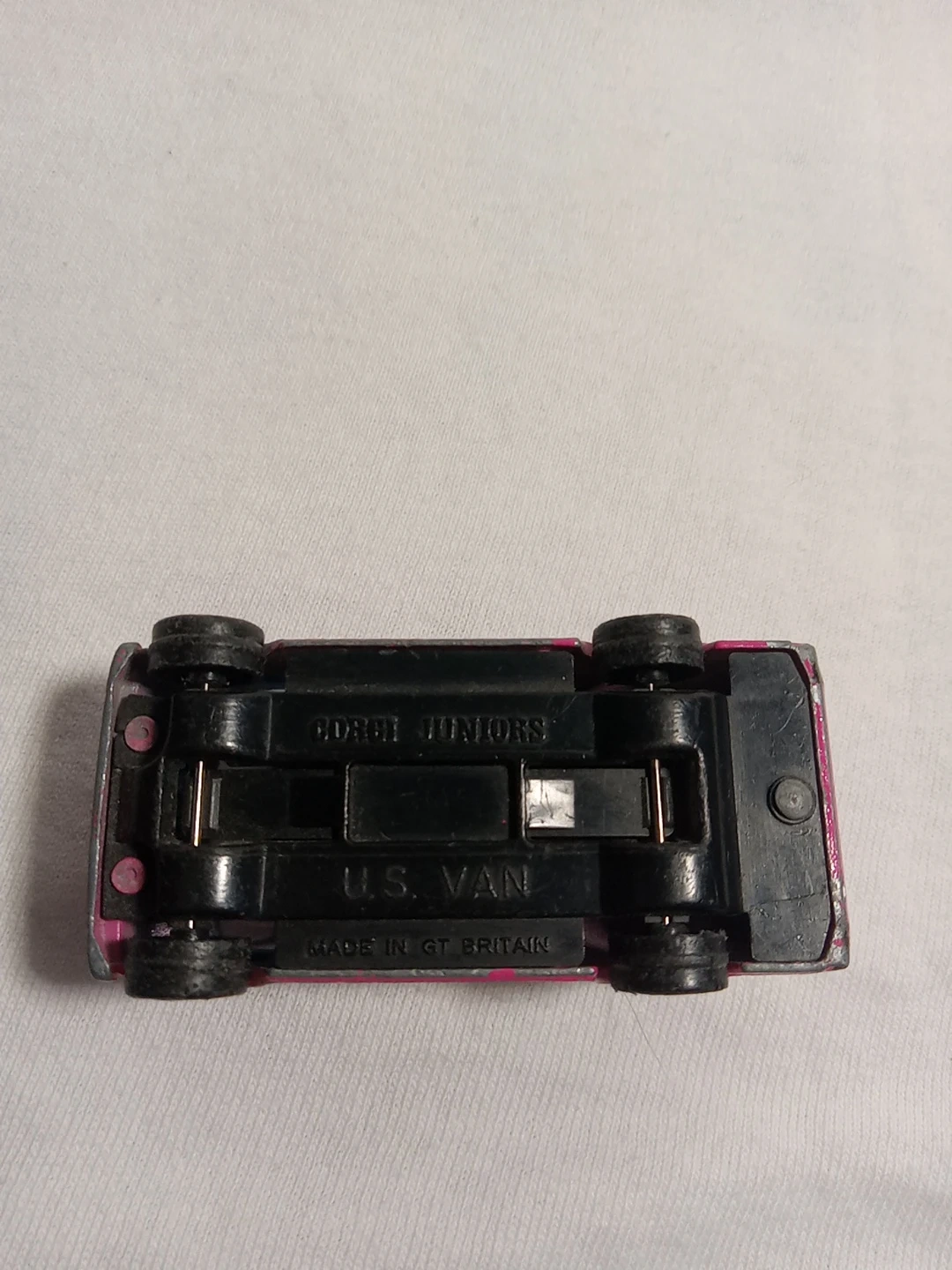 This is a pink Corgi Juniors Dodge U.S. Van from "Charlie's Angels". It's made in Great Britain. This die-cast toy is a great addition to any collection!