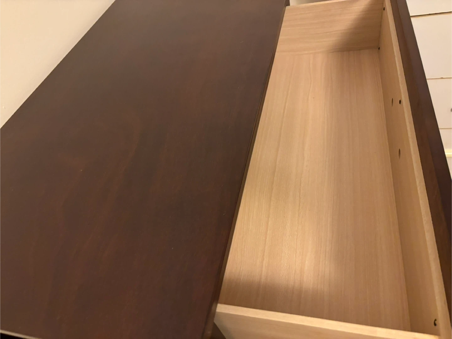 35.5” wide 18” deep by 49.5” tall brown dresser