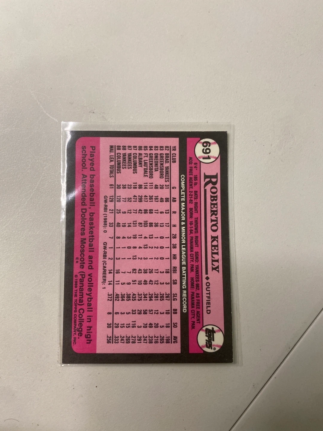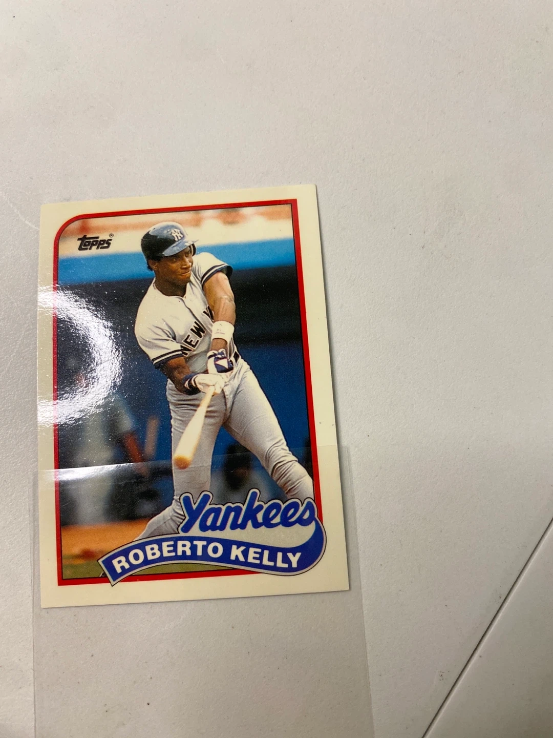 This is a 1989 Topps Tiffany baseball card featuring Roberto Kelly of the New York Yankees. The card is in good condition and includes his stats from his minor league career. It's a great addition for any baseball card collector!
