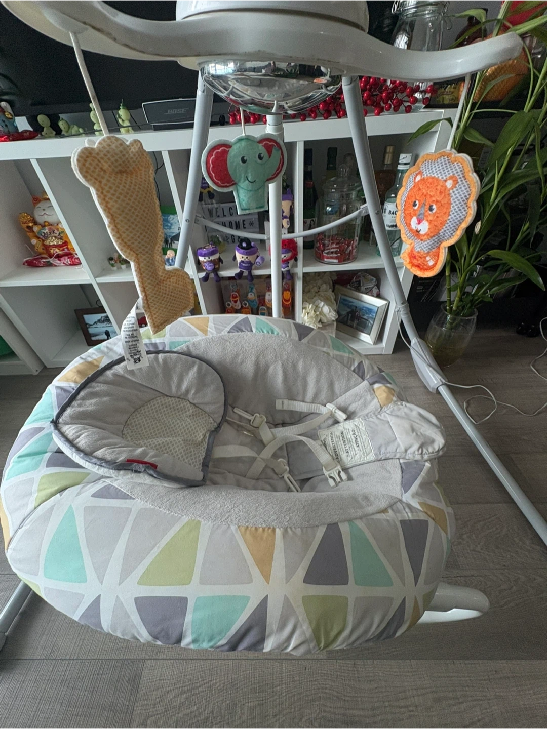 The base could be placed in two positions on the swing or could be used on the floor as a bouncer