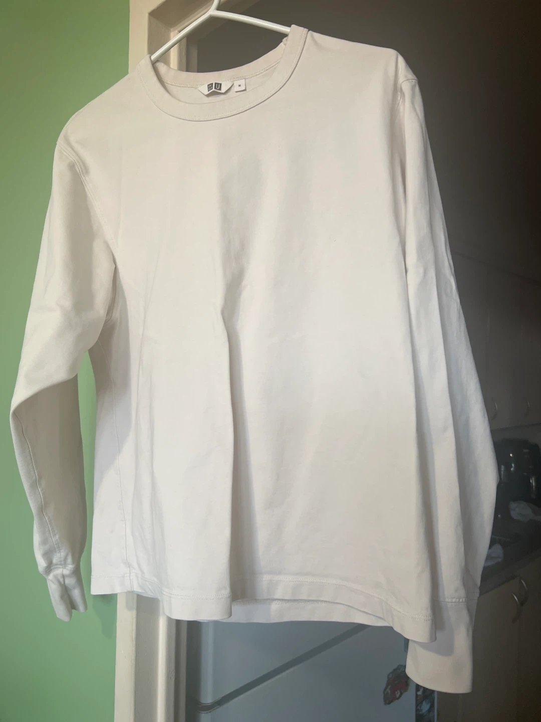 Selling a Uniqlo U long sleeve shirt in size medium. It's in great condition and ready for a new home. The material is soft and comfortable, perfect for layering or wearing on its own!