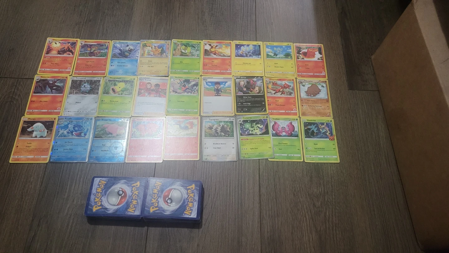 A collection of various Pokémon trading cards. These cards feature different Pokémon characters. They're great for collectors and players! They are real agree with me on this great deal.