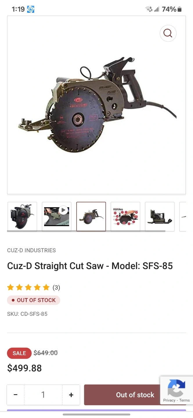Buy & SellCuz-D Straight Cut Saw - Model: SFS-85Cuz-D Straight Cut Saw - Model: SFS-85$200This is a Cuz-D Straight Cut Saw, Model SFS-85. It's a 10-inch blade saw. Great for making straight cuts on various materials.WHERE TO MEETCheck LocationView MapSELLERBertCarmel100 reviews0 chats·0 favorites·3 viewsSEND CHAT TO SELLERHi Bert! I’m interested in your listing.Hi Bert! I’m interested in your listing.Get the Karrot app to chatSign In to chat