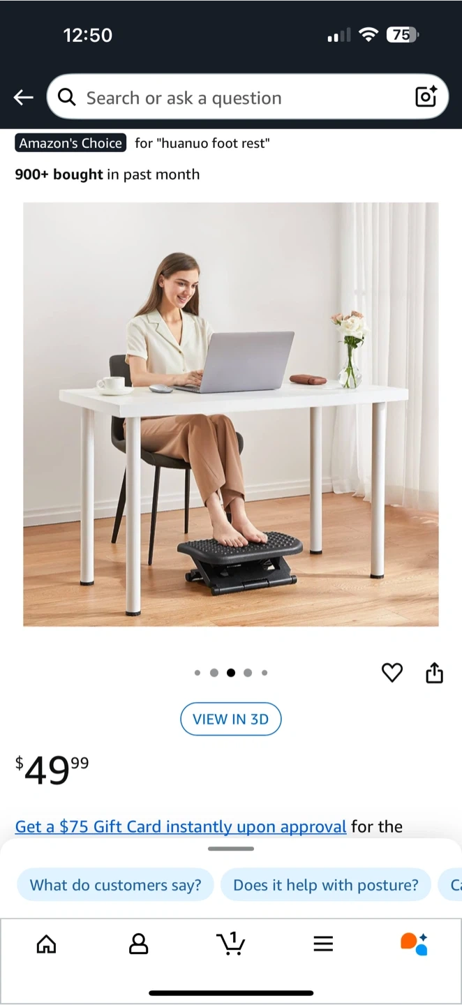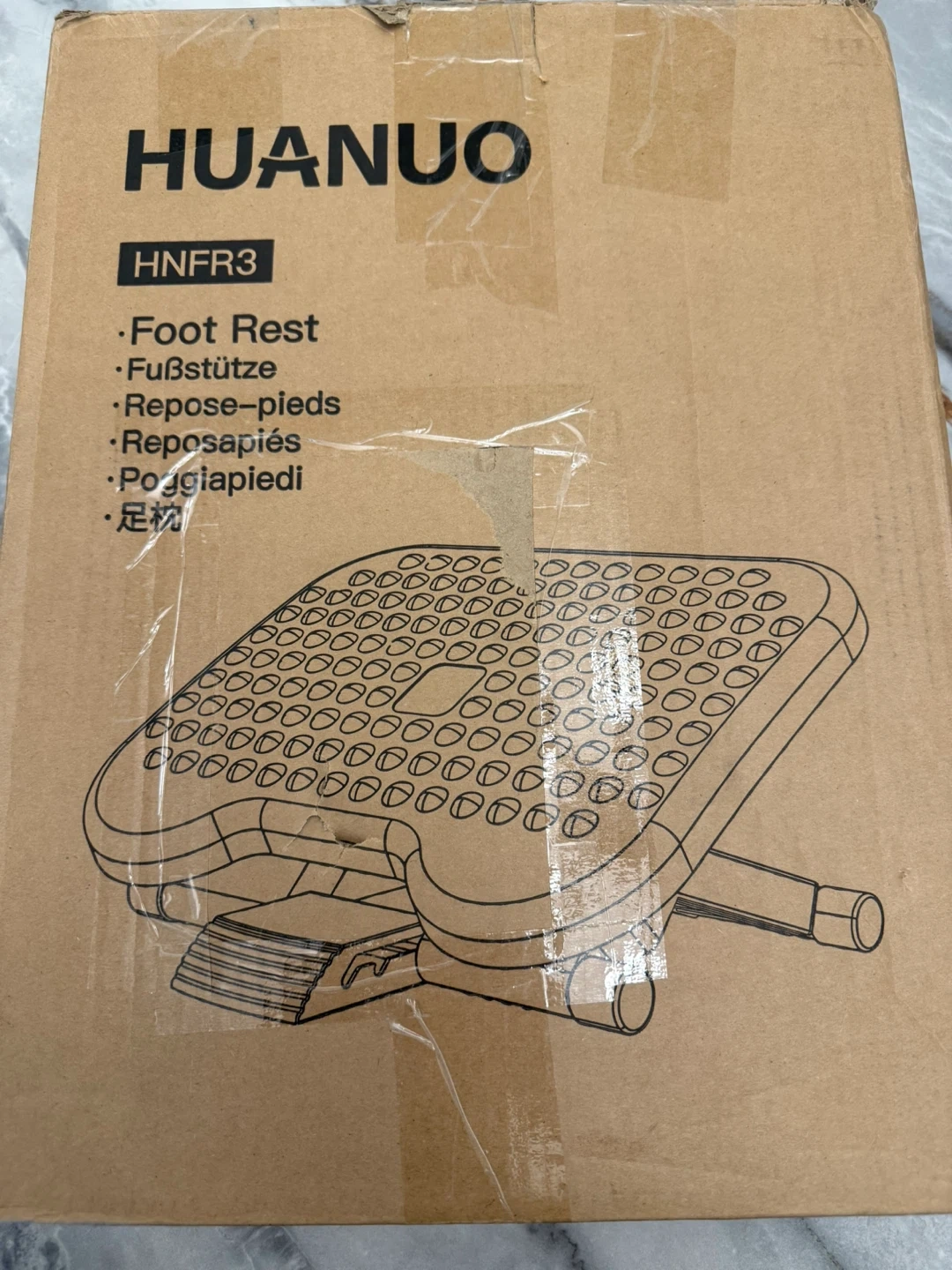 This is a HUANUO foot rest, model HFR3. It comes with the original box. Originally bought for $49.99. It's great for improving posture and comfort while you work!