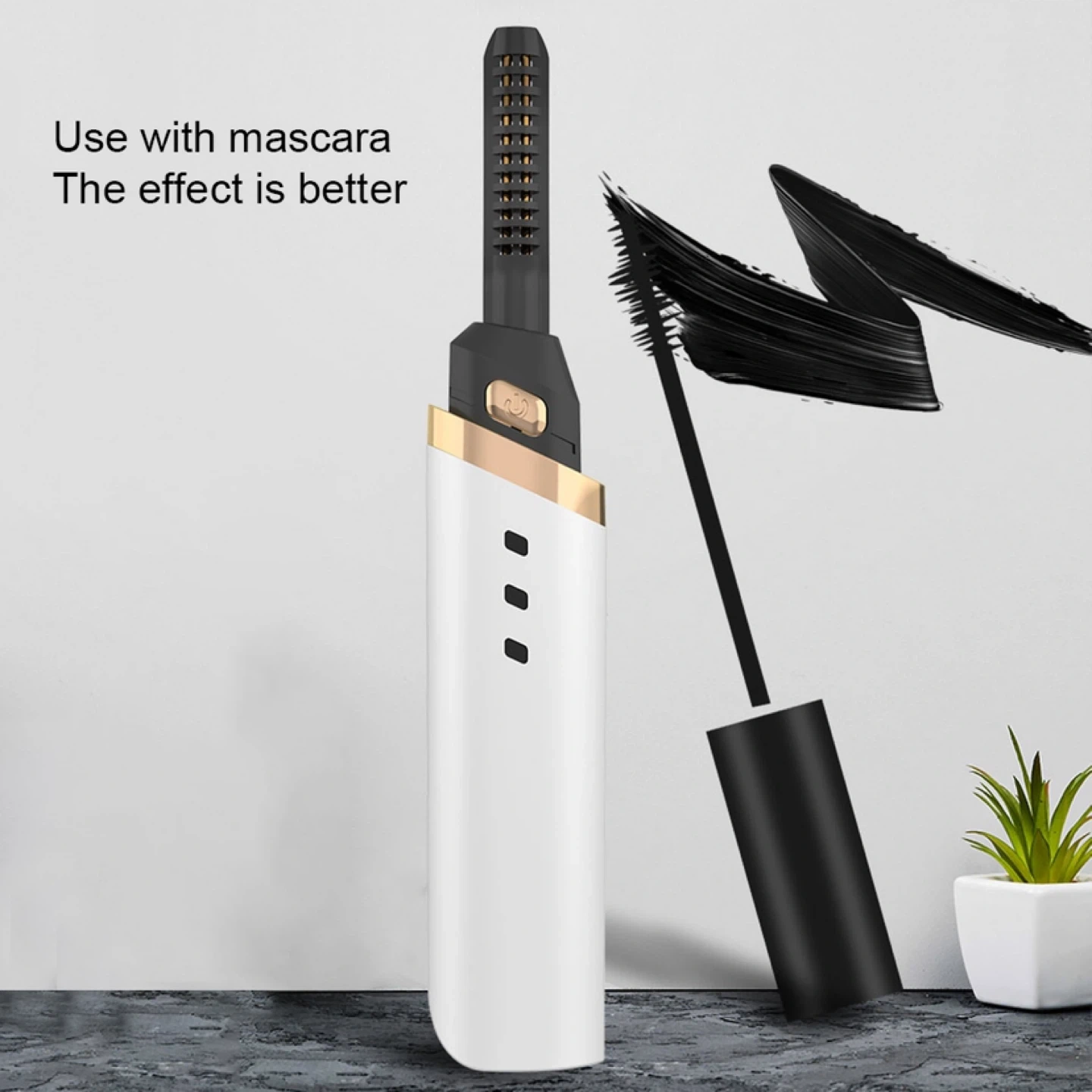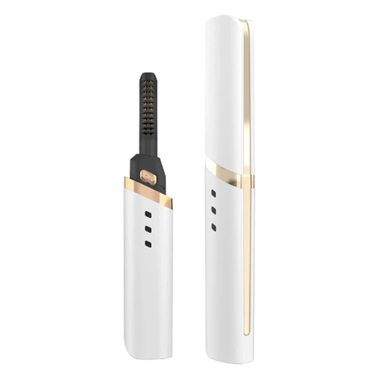 Get perfectly curled lashes with this heated eyelash curler! It's in NEW condition and easy to use. The white and gold design is super sleek, and it heats up quickly for fast results. It's a great alternative to traditional eyelash curlers and can be used with mascara for an even more dramatic effect. Rechargeable.