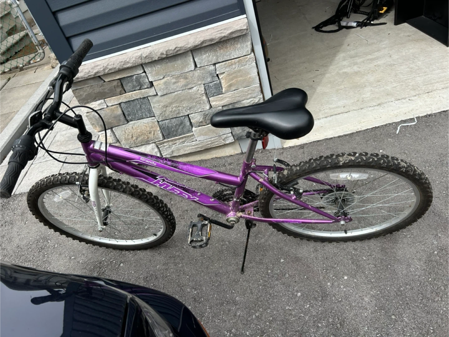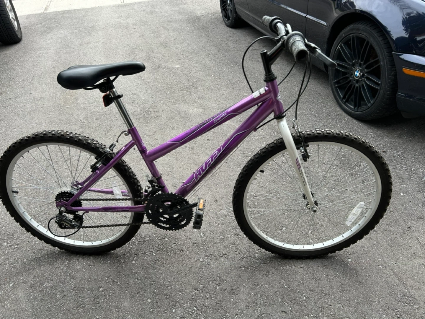 Selling a Huffy Granite mountain bike in purple and white! It's in used condition but still has lots of life left. Great for trails or just getting around town