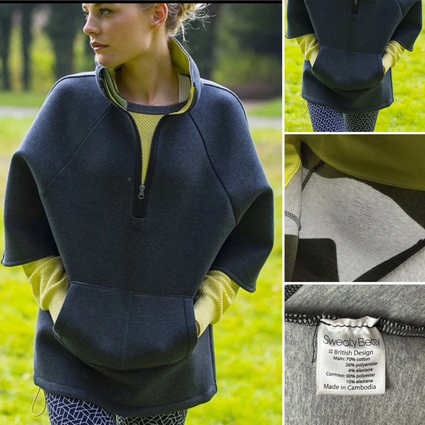 Sweaty Betty Uplift Luxe Cape Top (Small) - Grey with Neon Accent, Oversized Fit