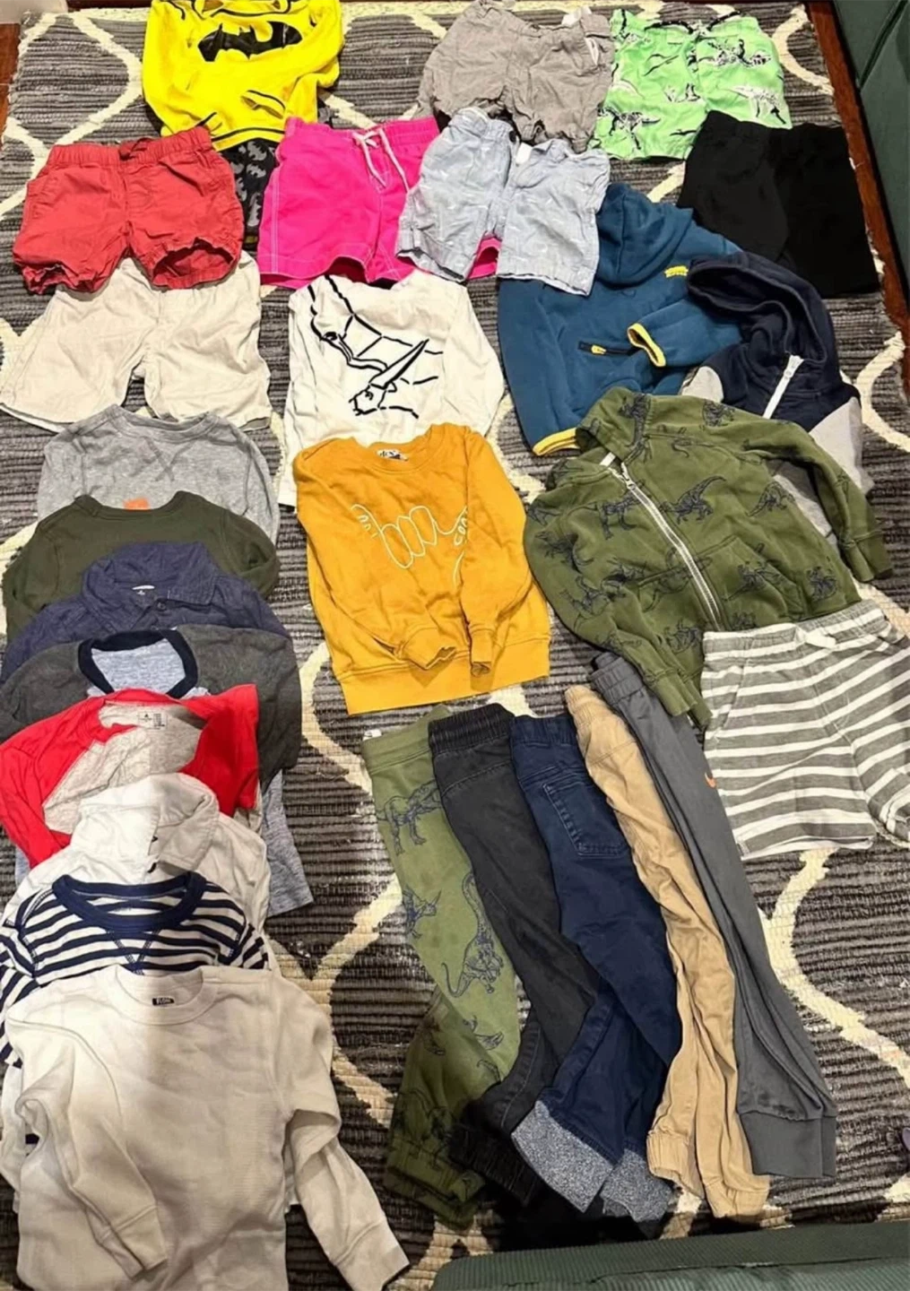 Selling a big bundle of gently used boys' clothing and shoes! Sizes range from 3T. Includes shirts, shorts, pants, and a few pairs of shoes. Great for stocking up on clothes for your little one!