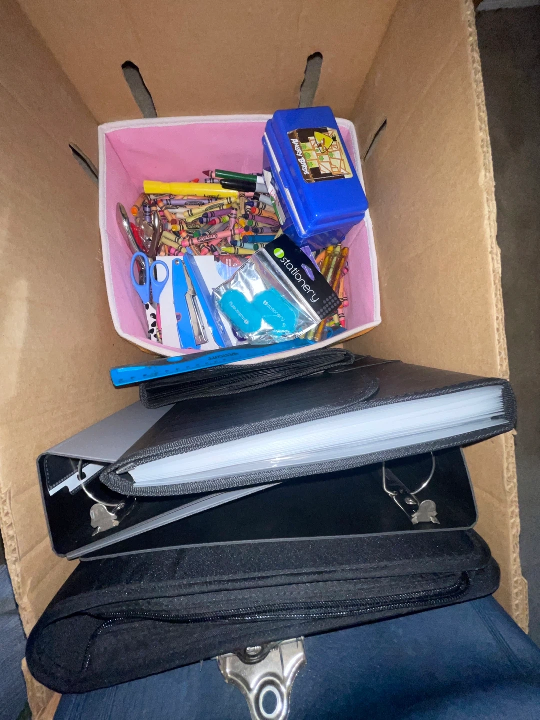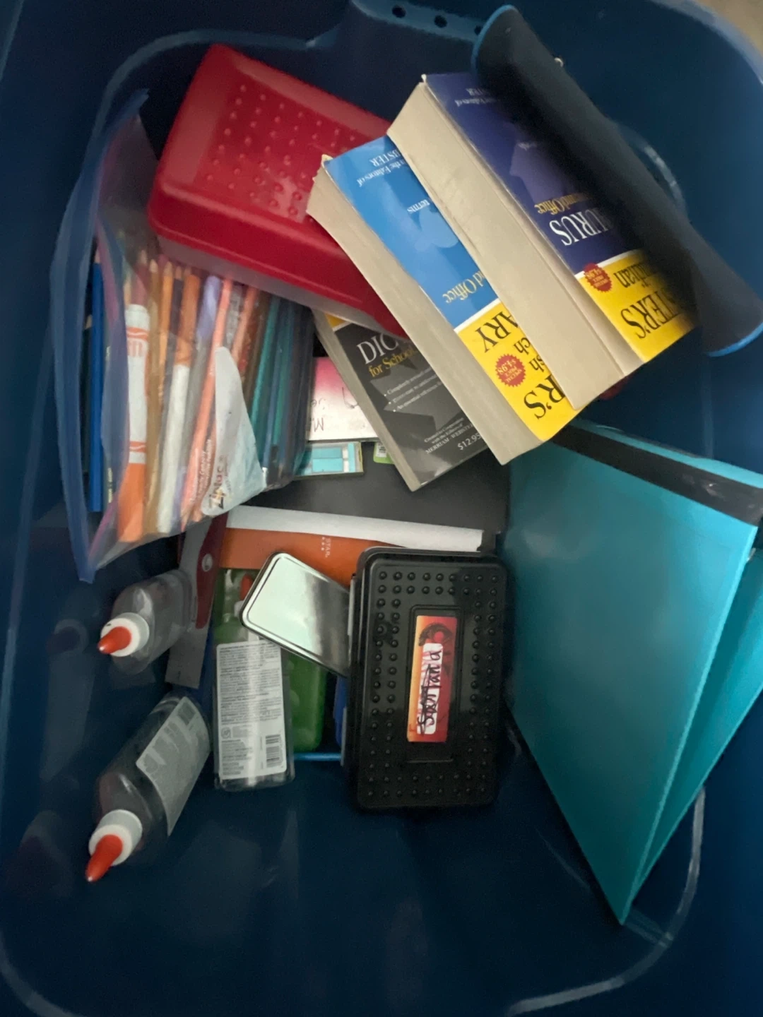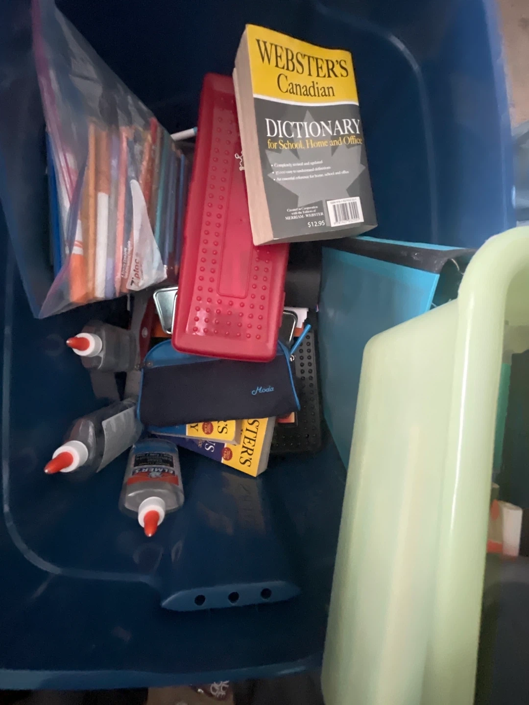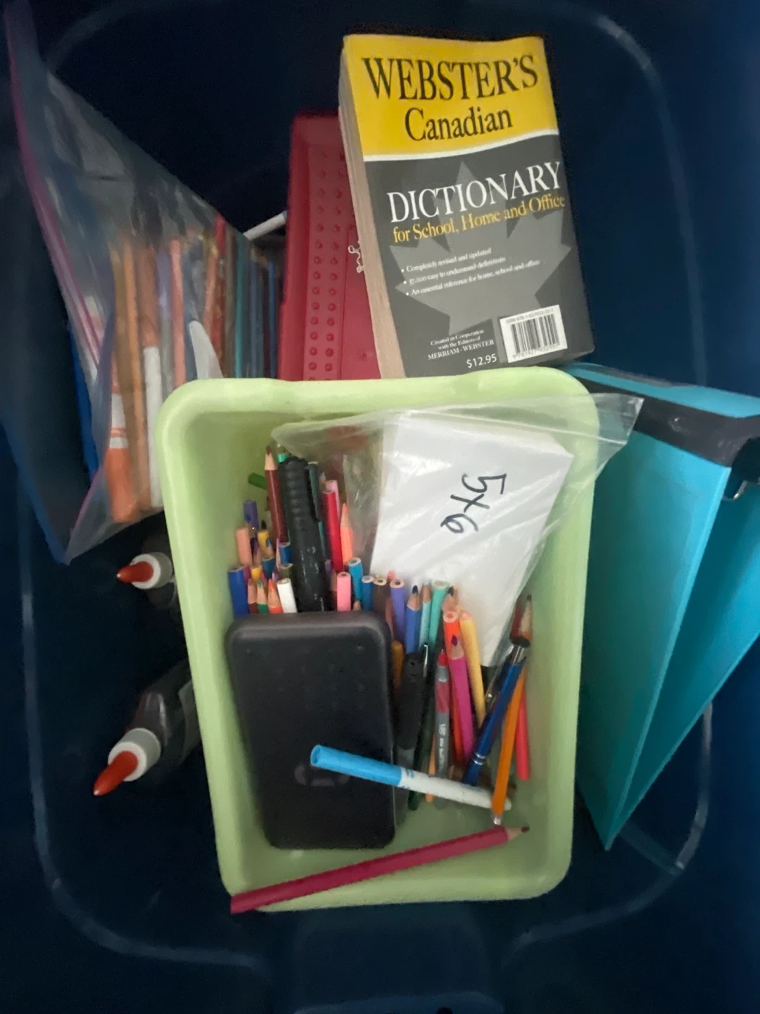 Grab it all for $35, everything in the bin: pencils, pens, pencil cases, markers, calculators, dictionaries, flashcards, glue binders etc probably even more I need my bin so please take the stuff out bring a box