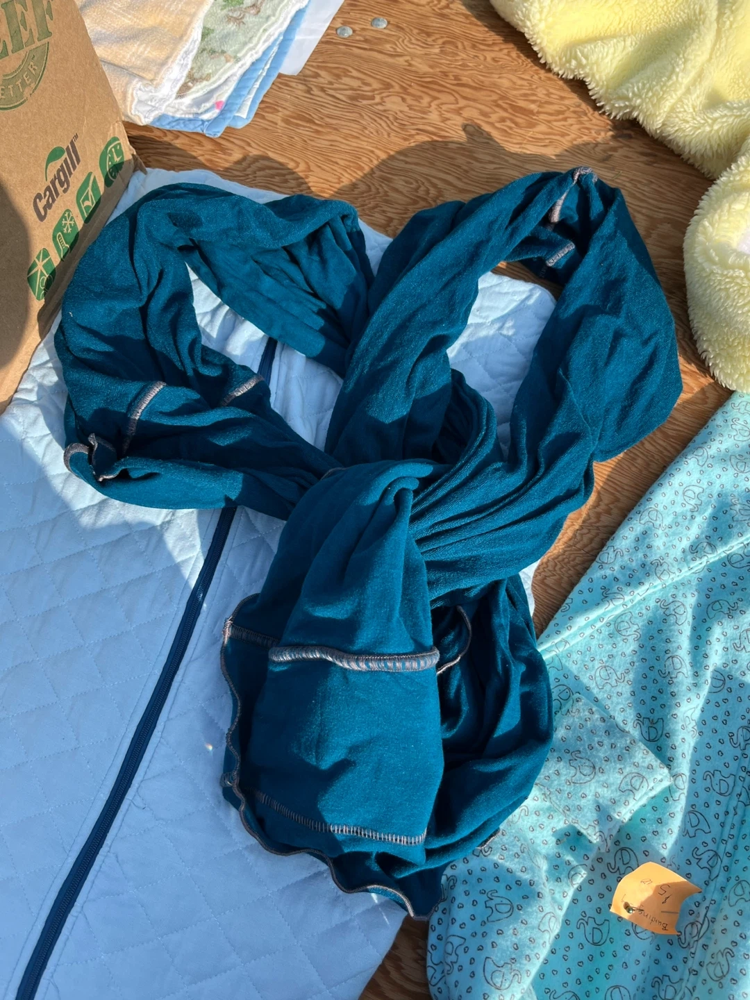 15Selling a Huggaloop baby wrap carrier in a lovely teal colour. It's great for keeping your little one close and comfortable while you're on the go. Perfect for newborns and infants! Wear baby close to you and have your hands free. Size 1 (scale for sizing is 0-2). Has soft bamboo fabric. Comes from a pet free and smoke free home. Cash only.
