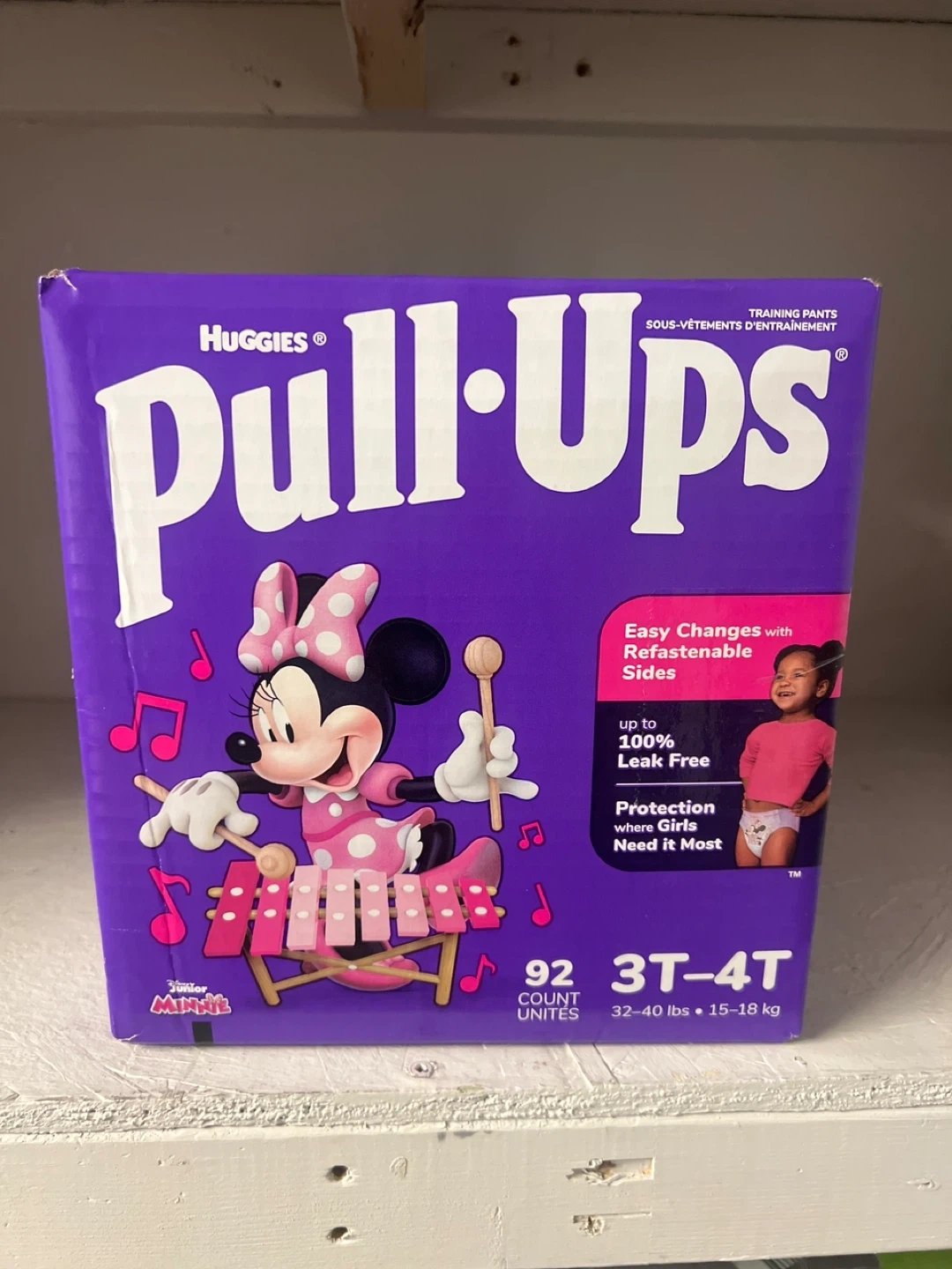 94Selling a box of Huggies Pull-Ups training pants for girls! These are size 3T-4T and the box contains 92 units. They feature easy changes with refastenable sides and up to 100% leak-free protection. Perfect for when your little one needs it most!