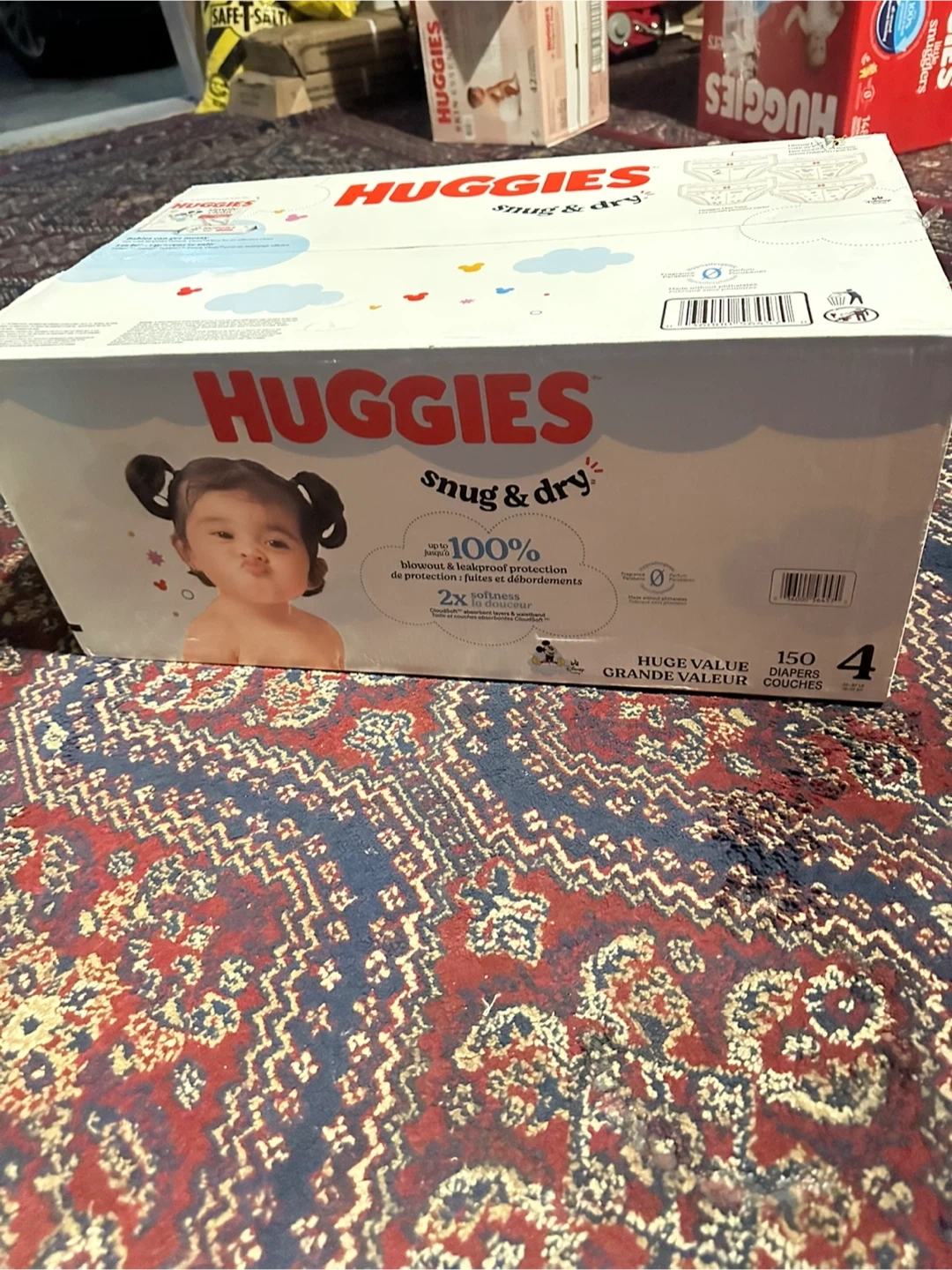 Selling a brand new, of Huggies Snug & Dry diapers! This is a huge value box with 150 diapers in size 4. Perfect for keeping your little one comfy and dry with up to 100% blowout and leakproof protection, and 2x softness!