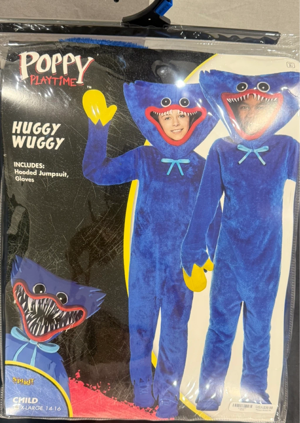 60Selling a Huggy Wuggy child costume from Poppy Playtime! It's a size XL (14-16) and includes a hooded jumpsuit and gloves. Material content is 100% polyester. Originally bought for $39.99 USD. Perfect for Halloween or dress-up!