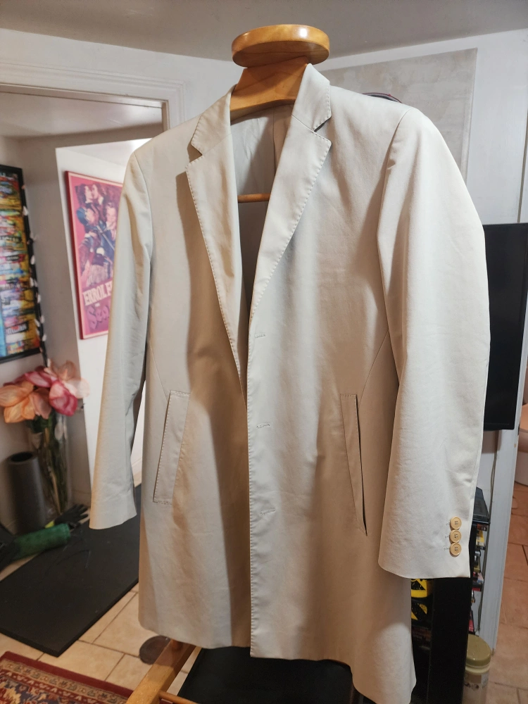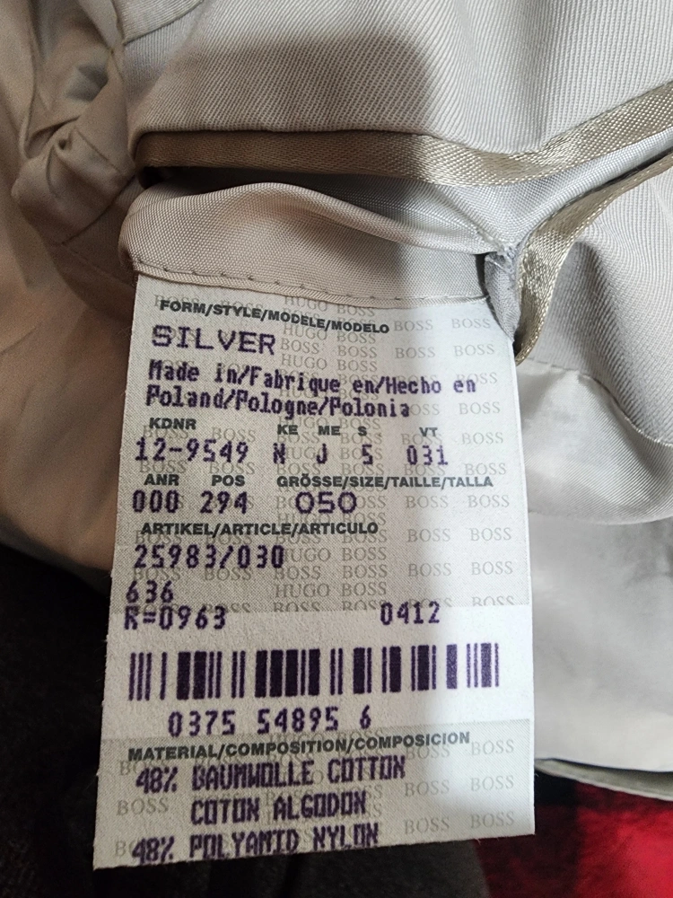 Elevate your wardrobe with this stylish off white Hugo Boss coat, size 50 Euro, crafted from a blend of 48% cotton and 48% polyamid nylon, offering both comfort and durability. This coat has been gently used, worn less then a handful of times and remains in very good condition, perfect for adding a touch of sophistication to any outfit. The tag says "Silver" which is not the color. It is the collection/model name. Key Features: * Brand: Hugo Boss * Size: 50 Euro * Material: 48% Cotton, 48% Polyamid Nylon * Colour: Off white * Condition: Excellent Looking to upgrade your style? This Hugo Boss coat is waiting for you! If the ad is up, it’s still available, so don't miss out!