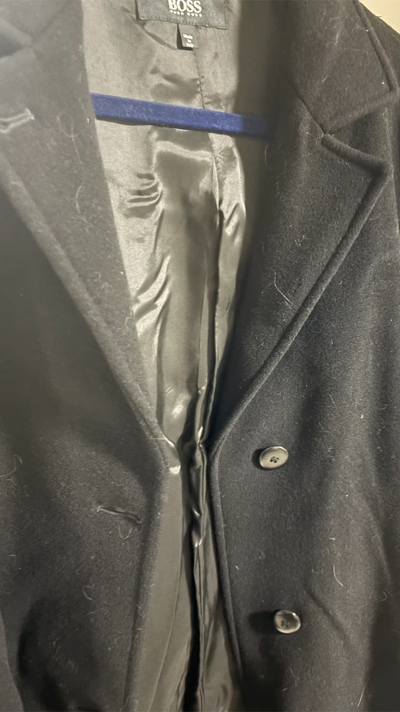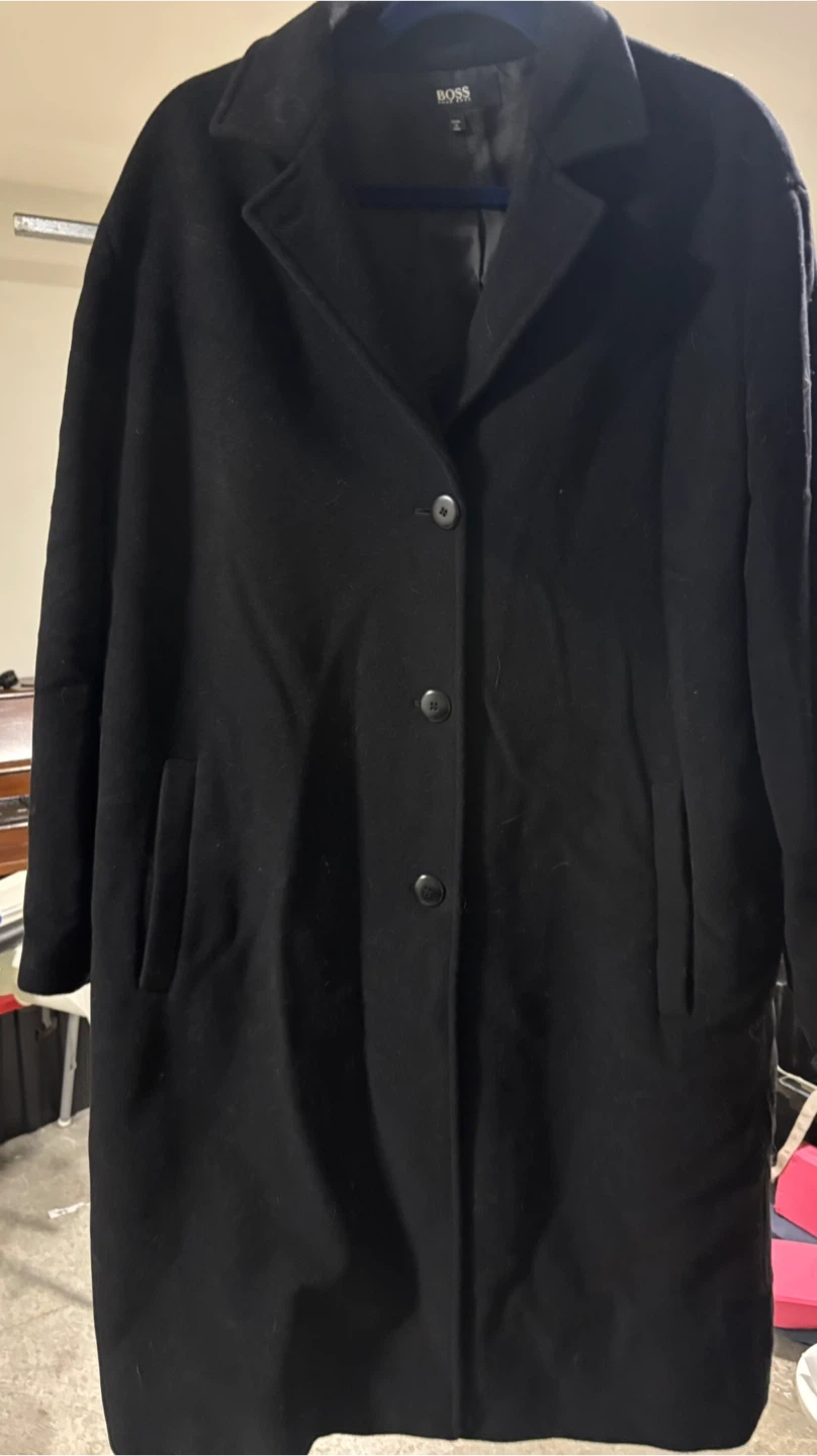 103Selling a Hugo Boss black wool coat. It is a size 14 (US). The coat is made of 100% wool and is in good condition. Made in Italy