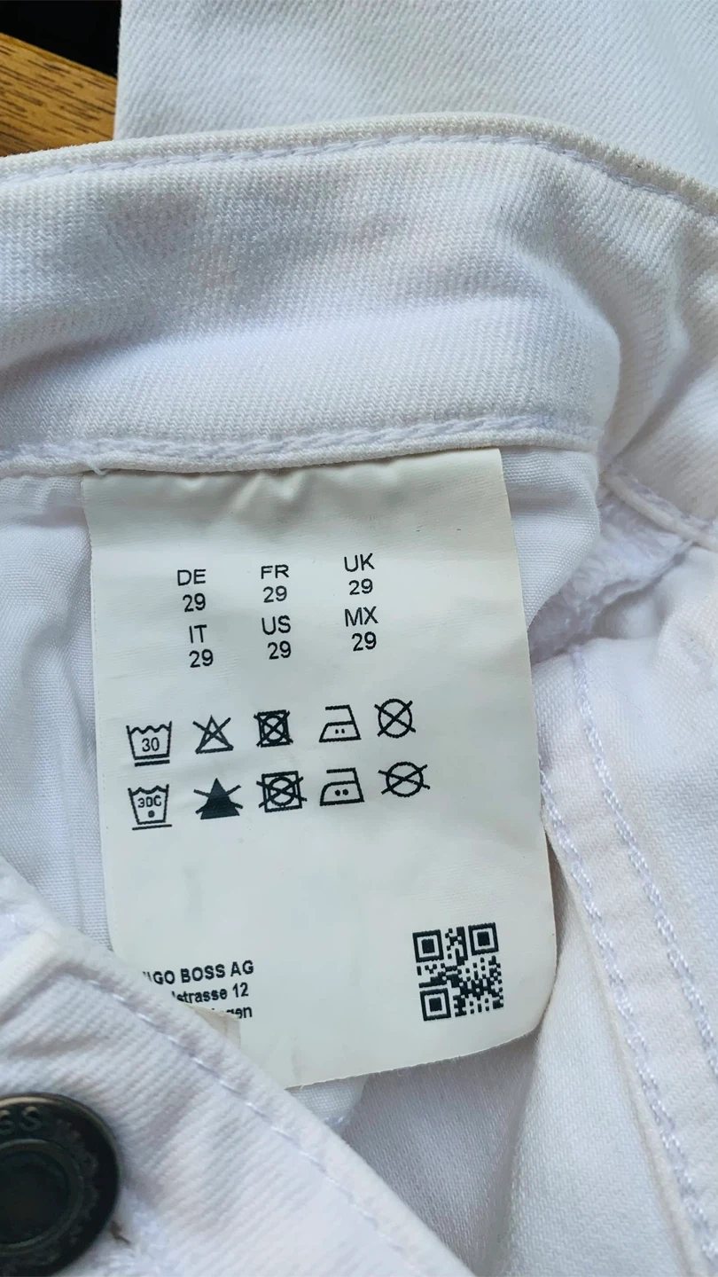 84These are a pair of Hugo Boss Easy J60 mid-rise jeans in white. They have a bit of distressing on the front. Great for a casual look! Womens Size 29.