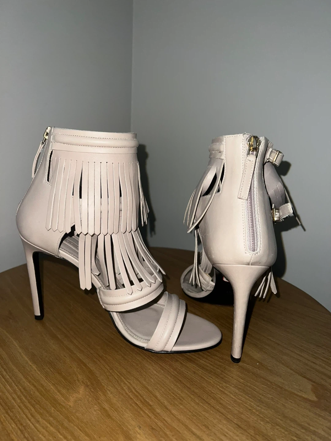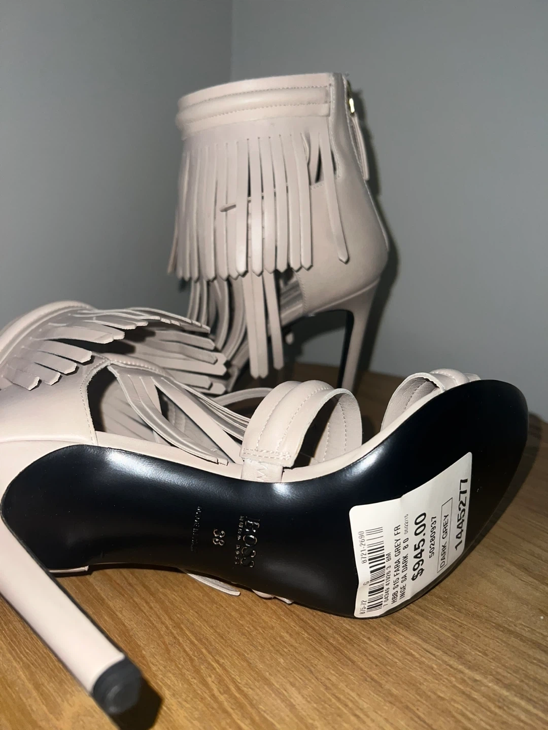 5These Hugo Boss heels are in new condition and ready for a new home! They feature a unique fringe design and a stylish stiletto heel. The size is 8. Originally bought for $945. New with Box. Fits like 7-7.5