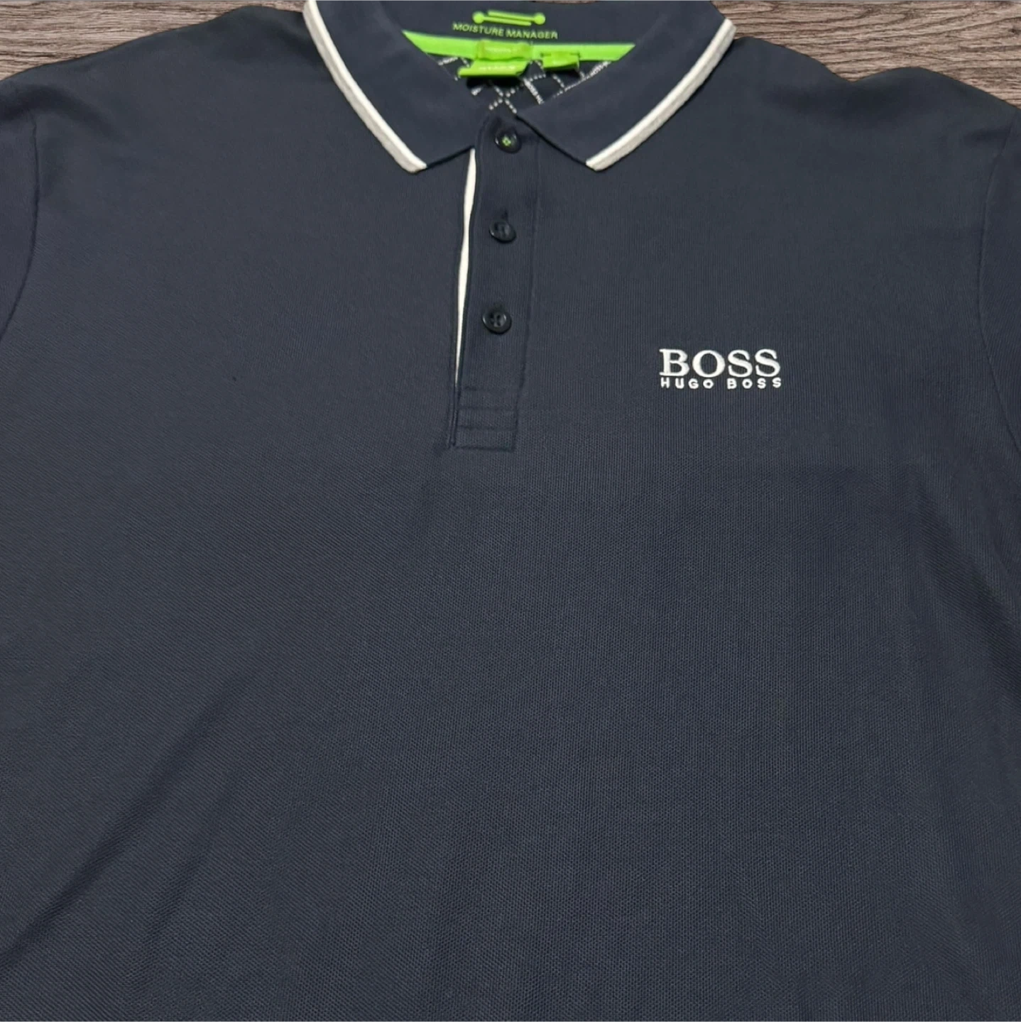 Hugo Boss polo shirt in a nice navy blue colour. It's in great shape and ready for a new home! The shirt has a moisture manager feature to keep you comfortable. Perfect for a casual day out or a round of golf