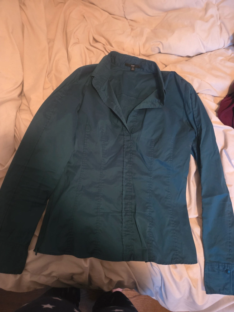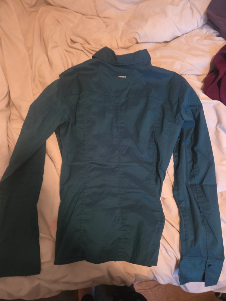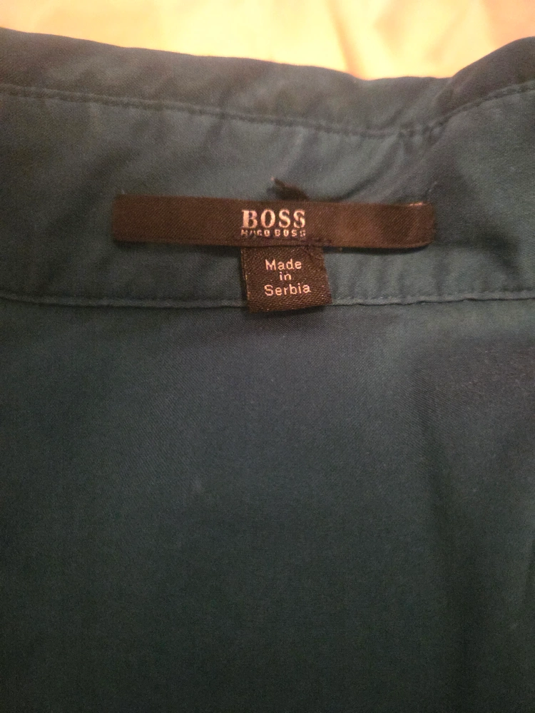 15Here's a Hugo Boss button-down shirt in a lovely teal colour! It's in great condition and ready for a new home. Perfect for adding a pop of colour to your wardrobe!