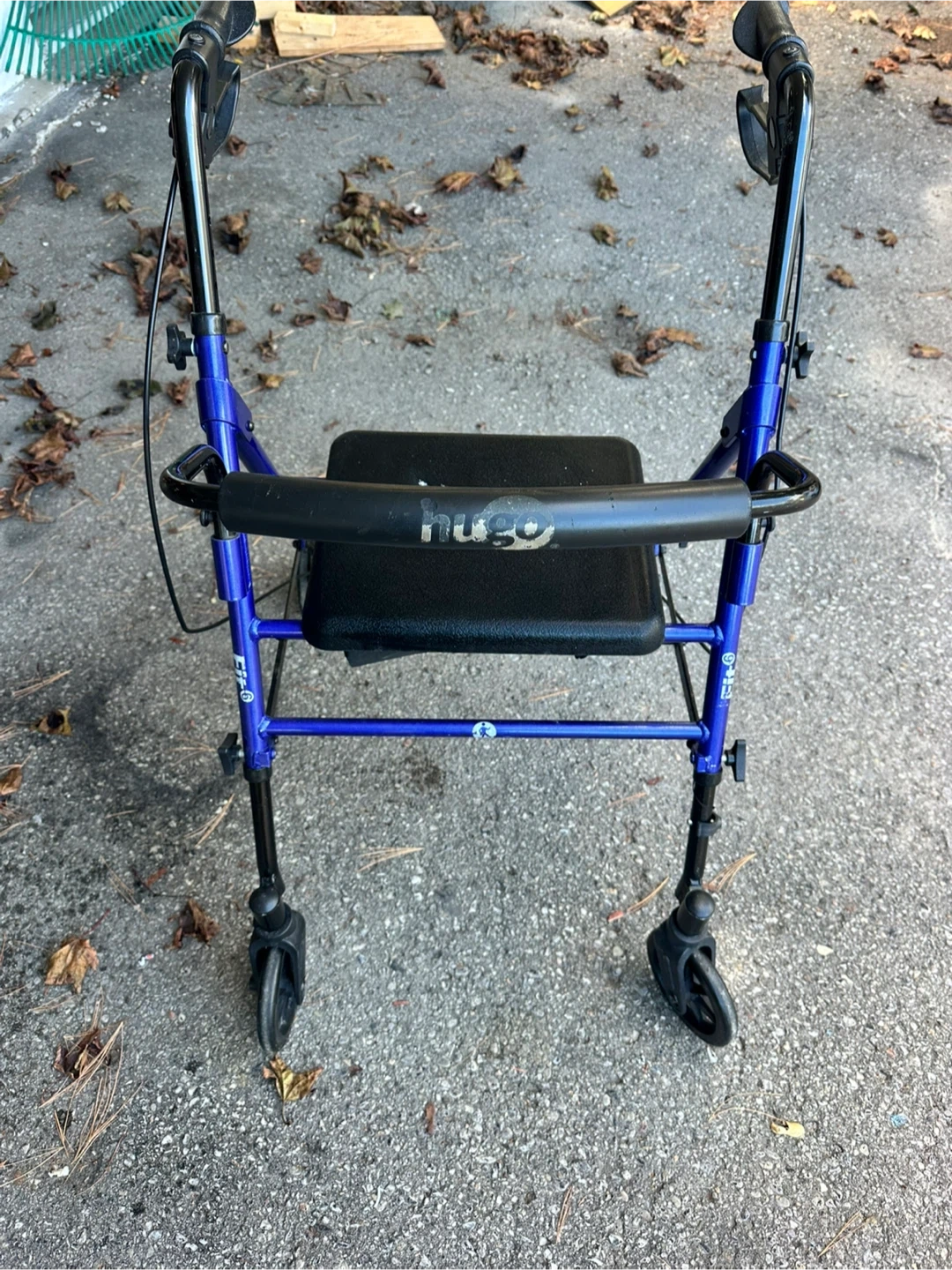 65Selling a Hugo Mobility rollator walker. It's in good condition and ready to help someone get around with ease. This walker features a comfortable seat, making it perfect for taking breaks during walks. The blue frame is sturdy and reliable, providing excellent support. A great aid for anyone needing a bit of extra stability! Use to belong to my mom Asking $50 obo