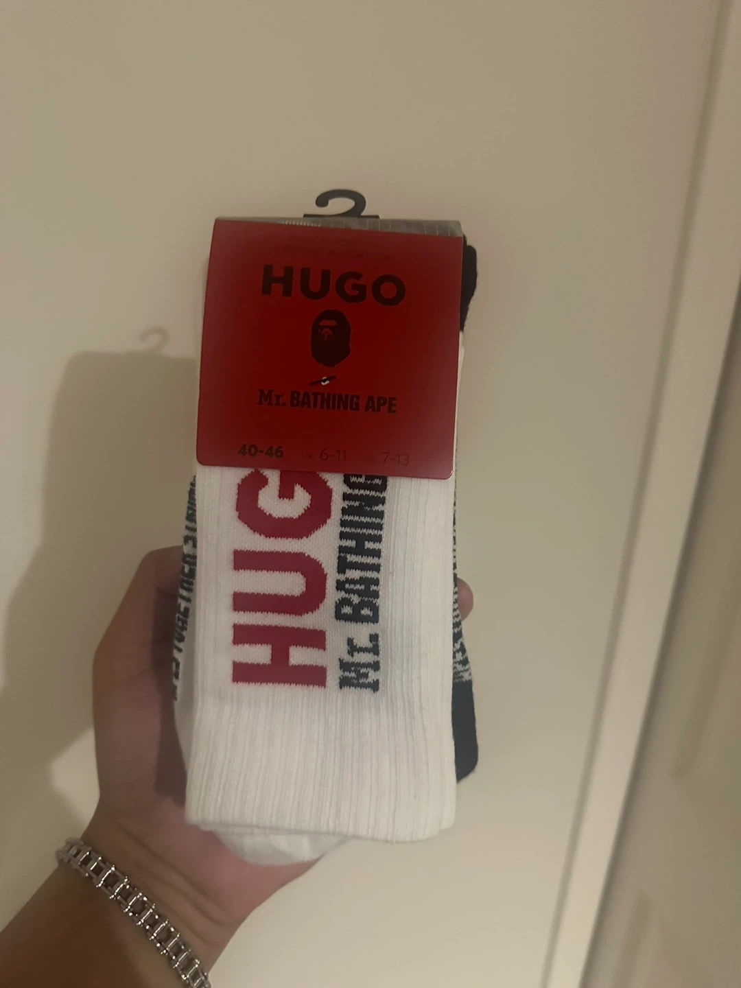 Get your hands on these Limited HUGO x A Bathing Ape socks! They come in a size (7-13).