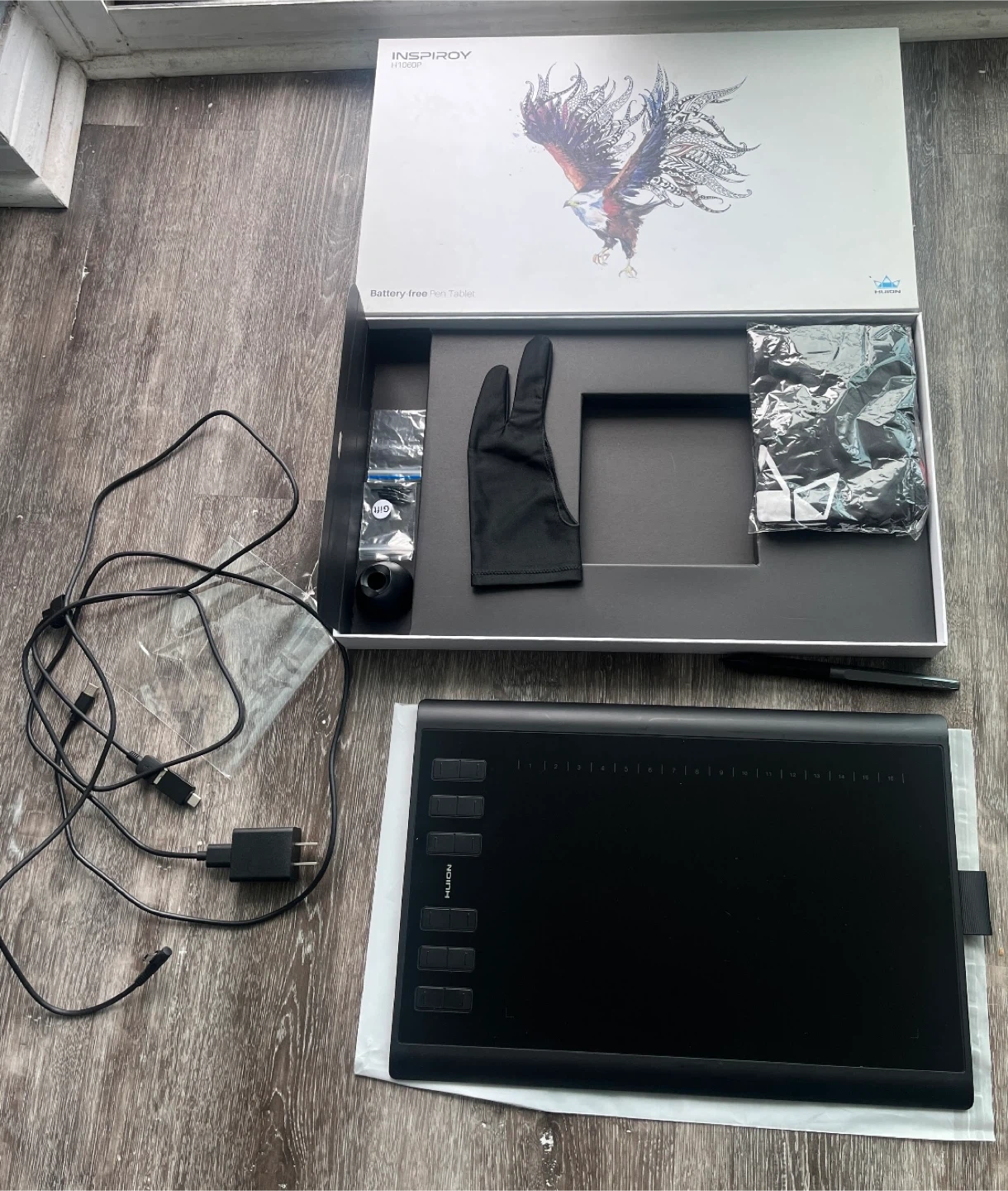 HUION Inspirory H1060P Graphics Tablet, 10x6.25 inch Drawing Pad with 8192 Pressure Sensitivity Battery-Free Stylus, Compatible with PC, chromebook, Android, Mac Used only once