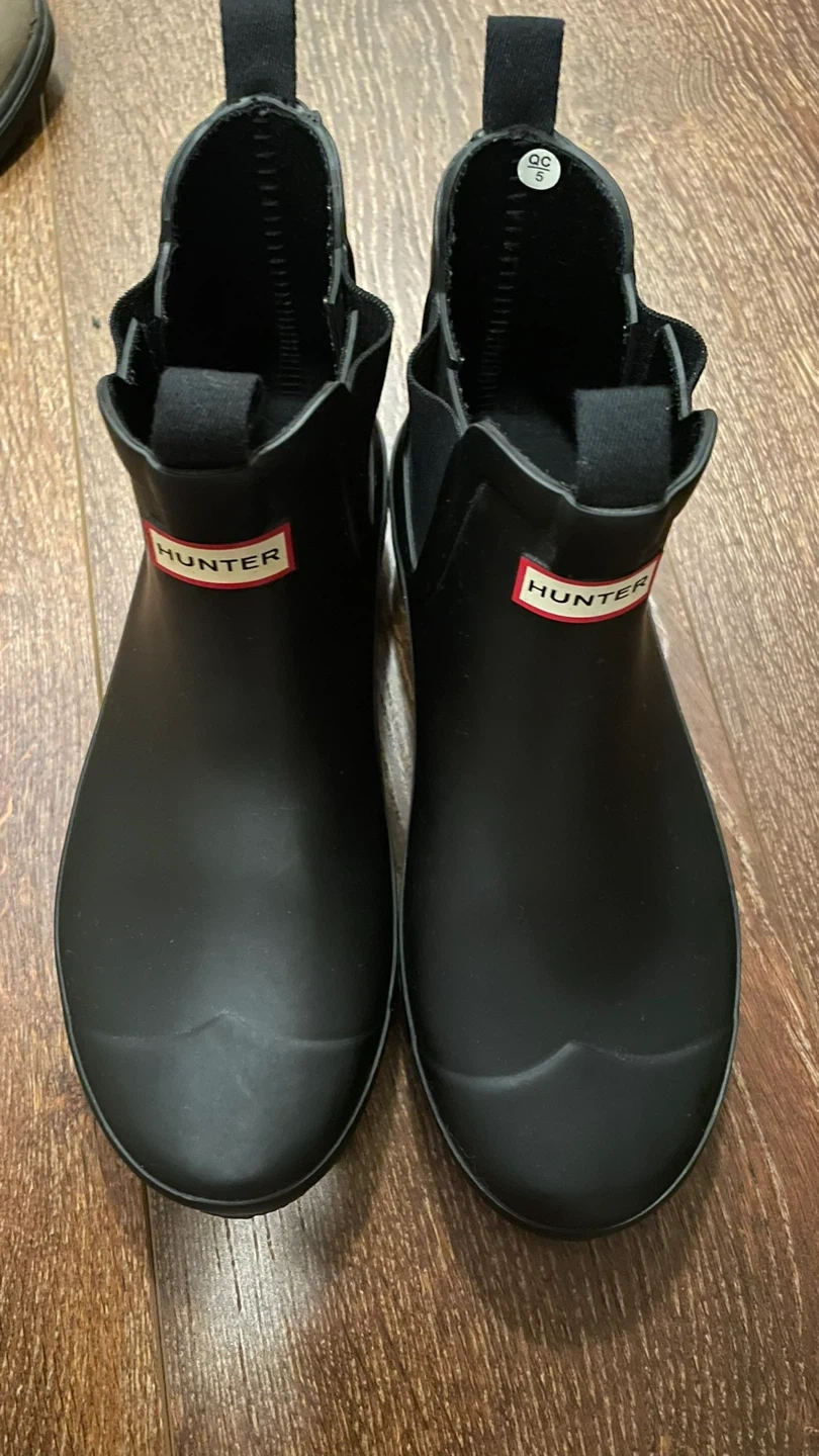 Selling a pair of Hunter Chelsea rain boots in black! They are in great condition and are a size 6 (US). Perfect for rainy days or muddy adventures!